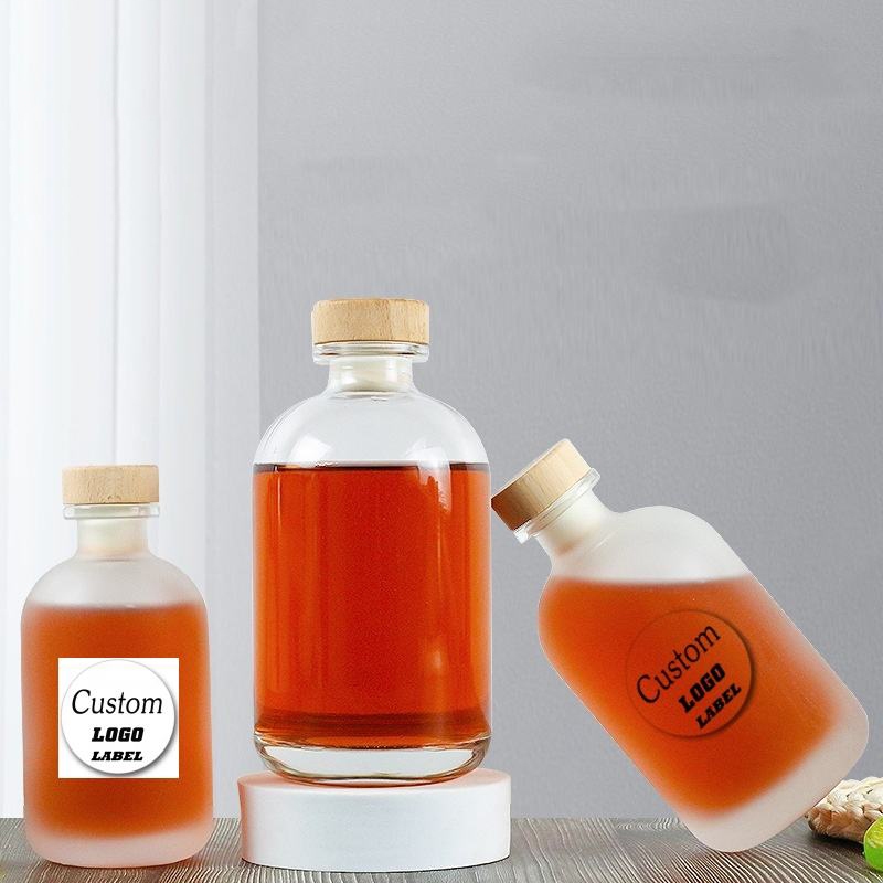 Clear Glass Liquor Bottles 100ml 250ml 375ml 500ml Cork Lids Homebrewing Ginder Bottle for Limoncello Beverages Liqueurs Alcohols