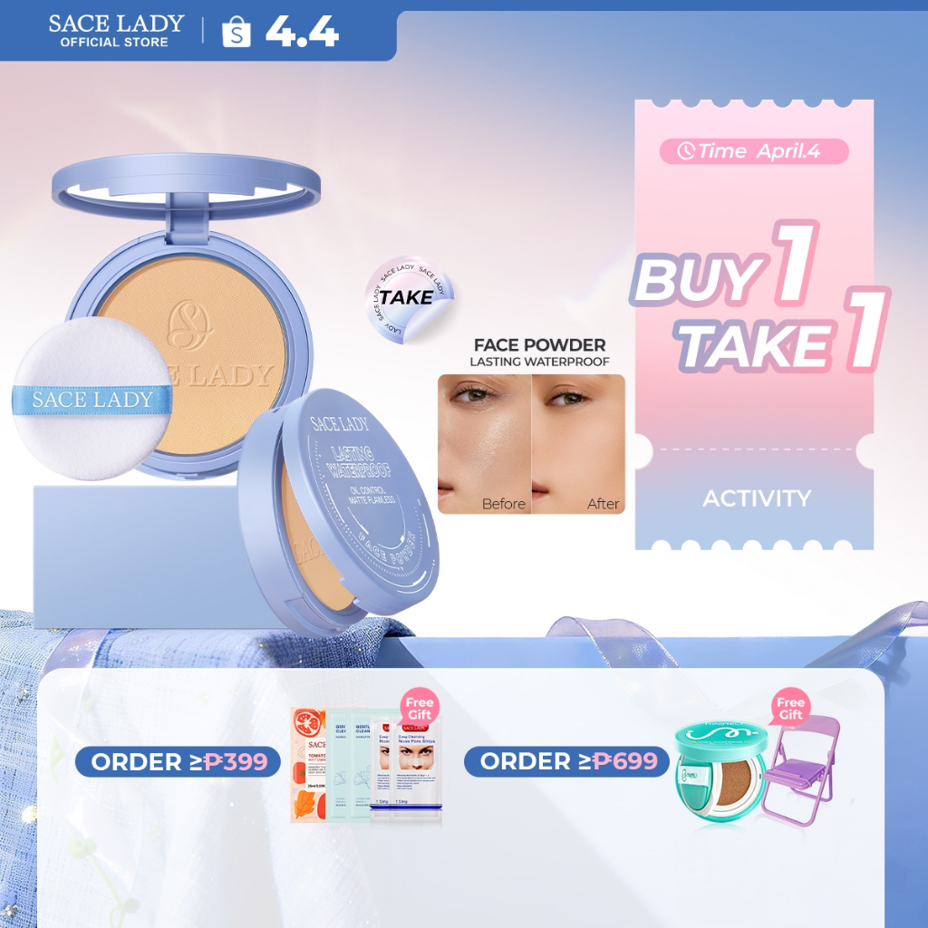 【BUY 1 TAKE 1】SACE LADY Oil Control Face Powder Matte Long Lasting Waterproof Flawless Setting Powder Compact Face Makeup With Puff [Smooth,Lightweight]