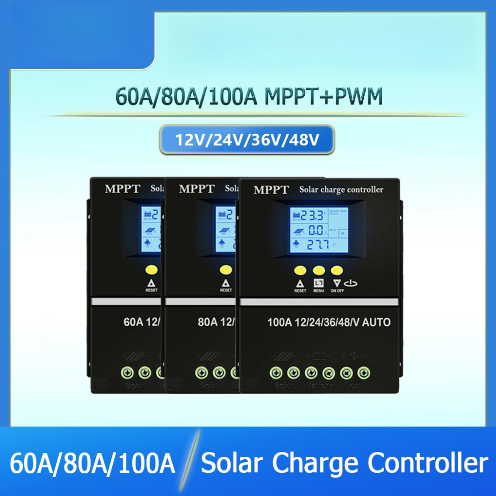 60A/80A/100A MPPT Solar Charge Controller 12V 24V 36V 48V LCD Display Battery Intelligent Regulator