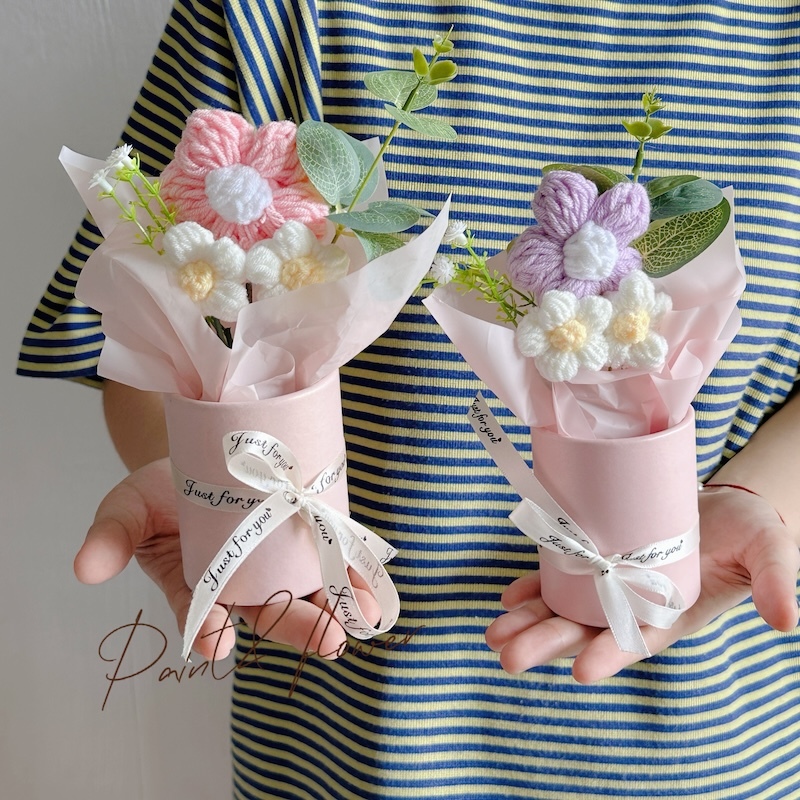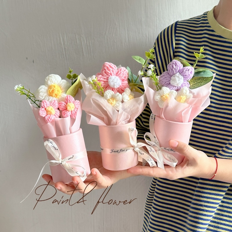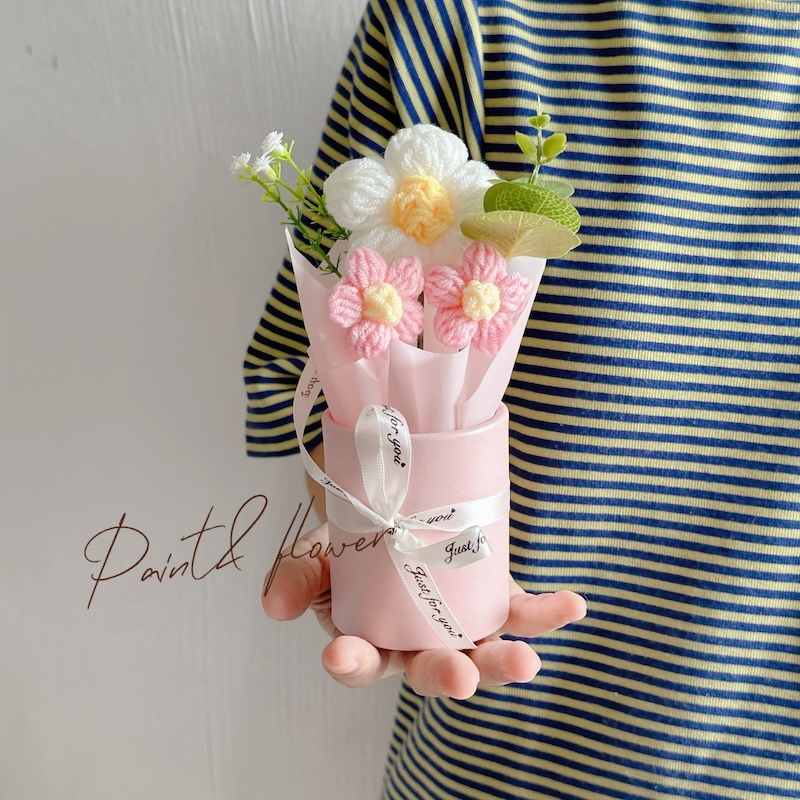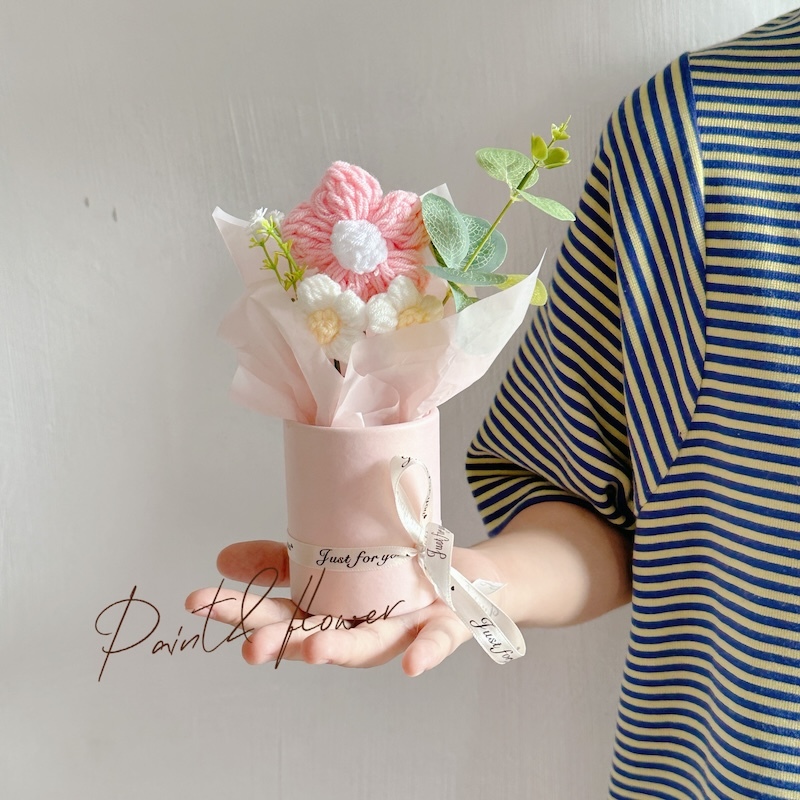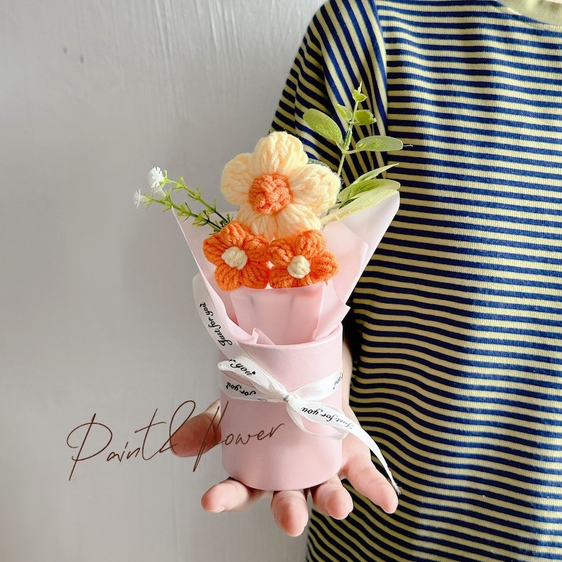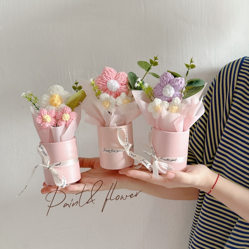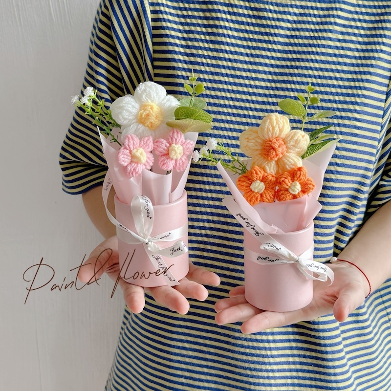 Knitted small flower bouquet flower bucket simulation flower teacher's day gift