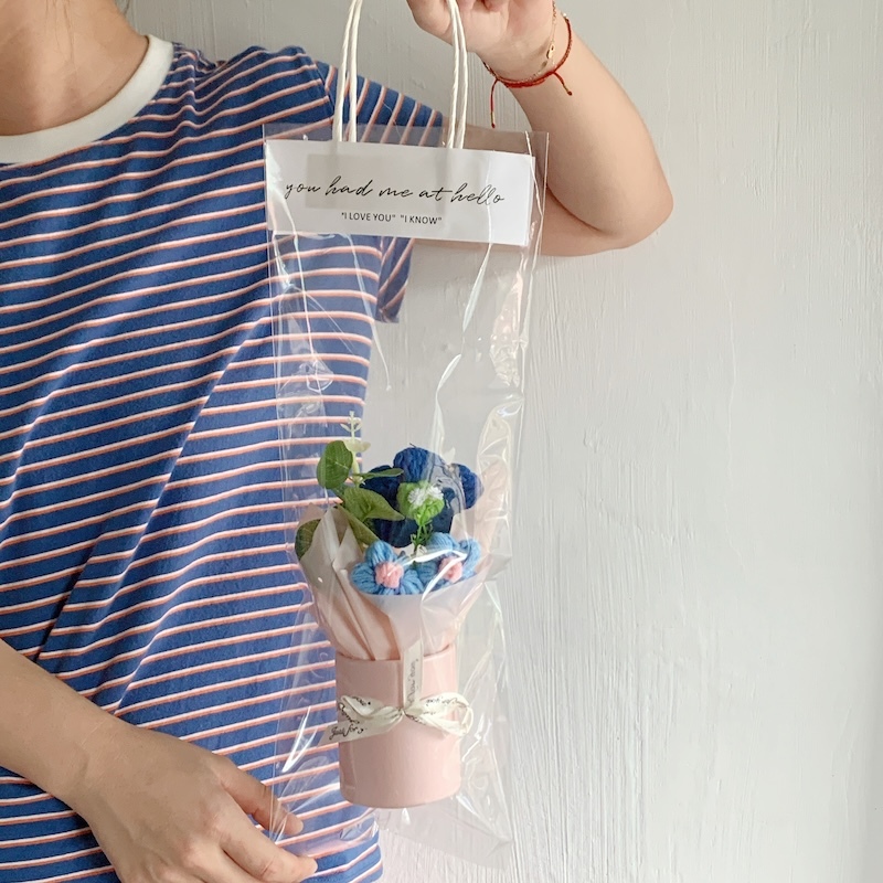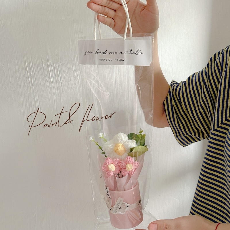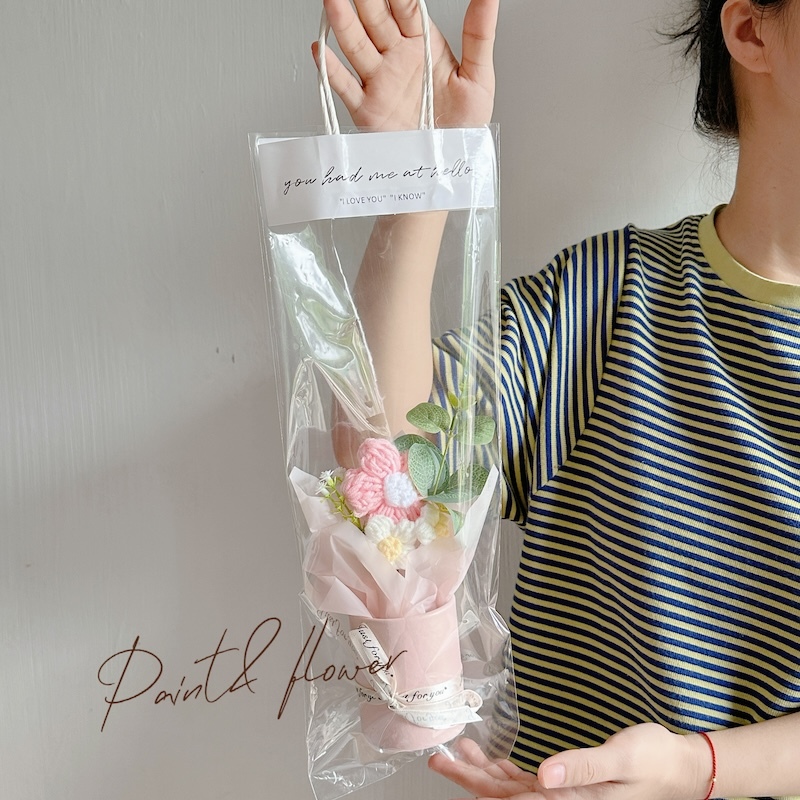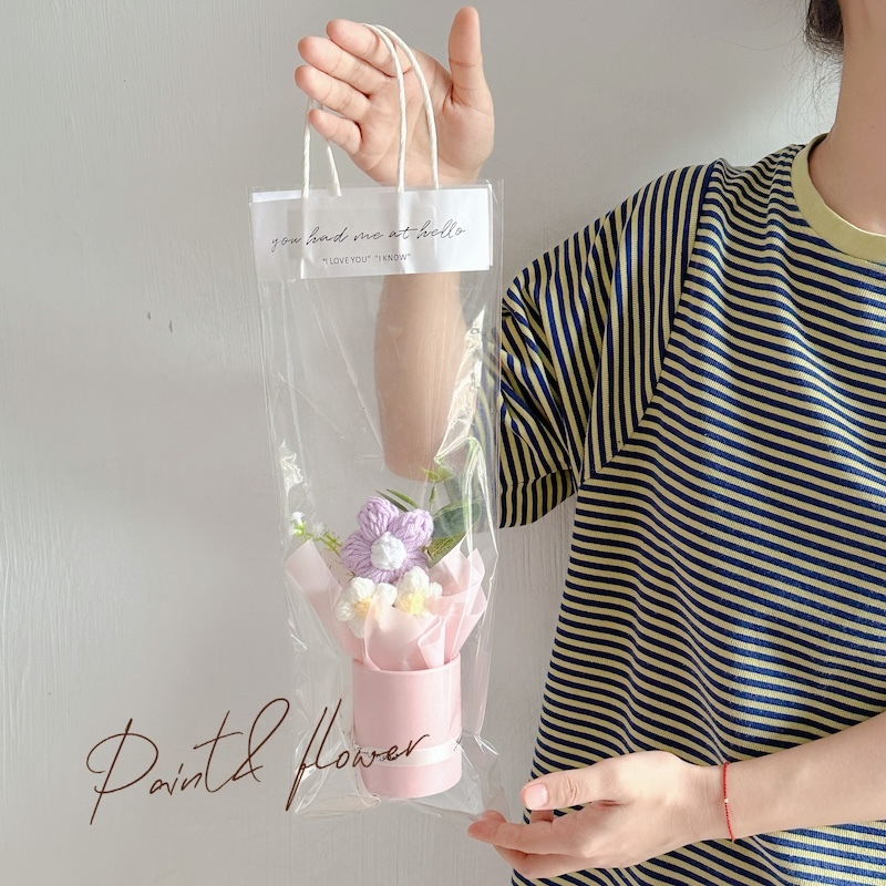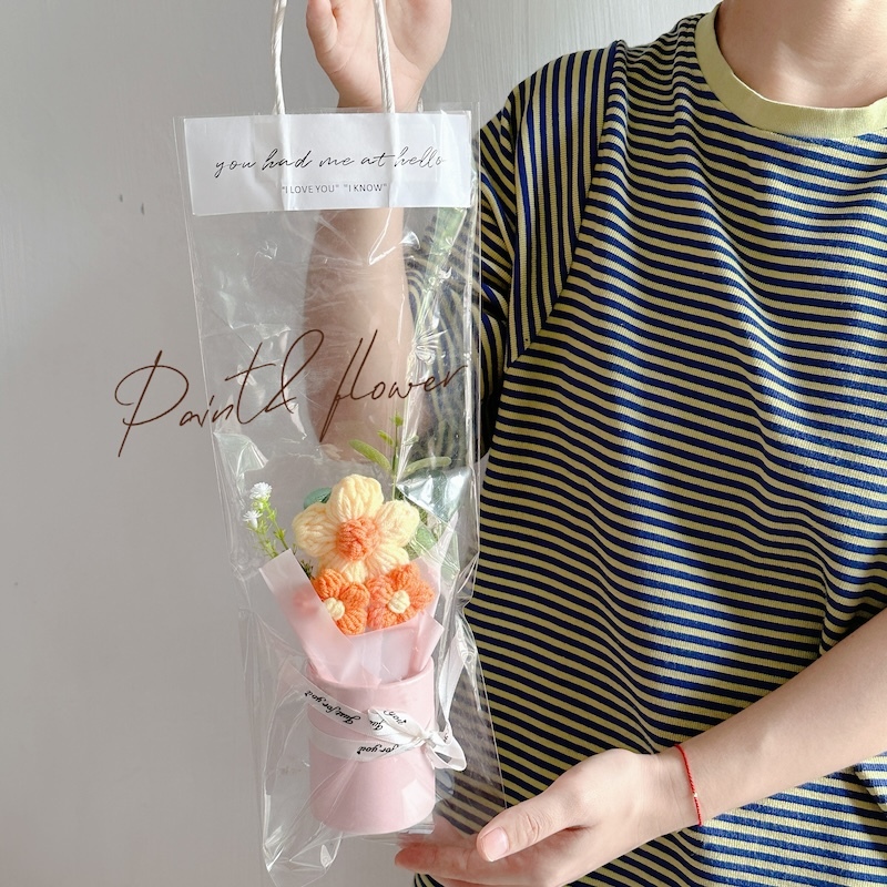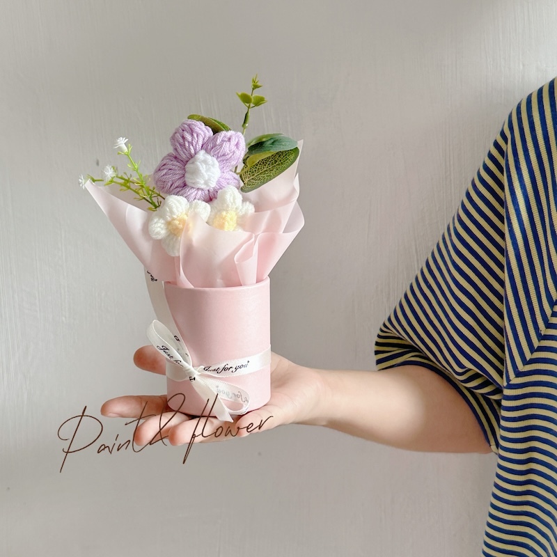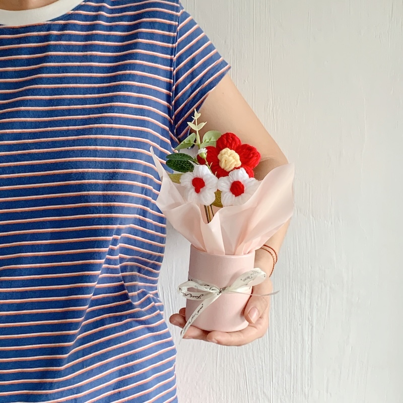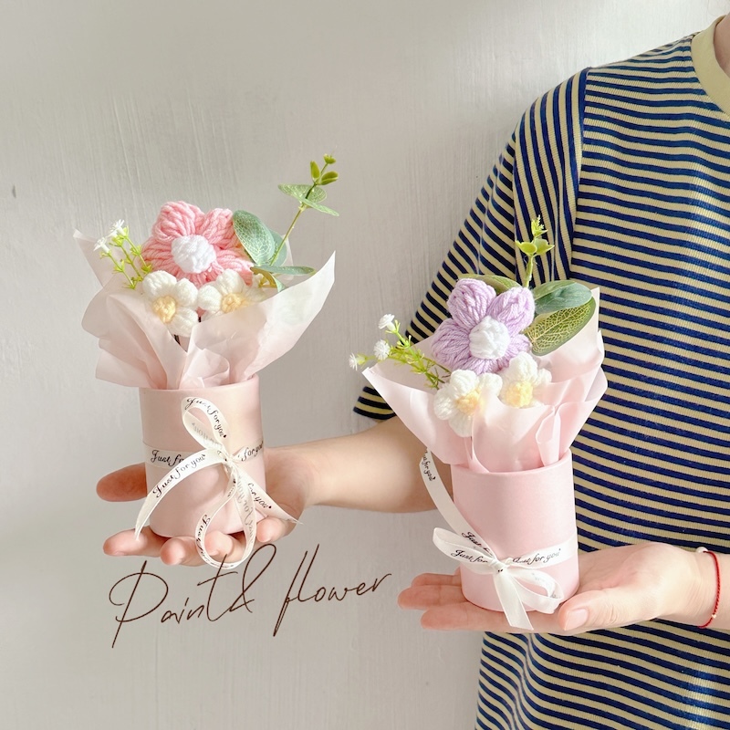 Knitted small flower bouquet flower bucket simulation flower teacher's day gift
