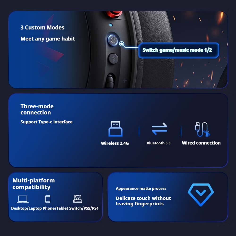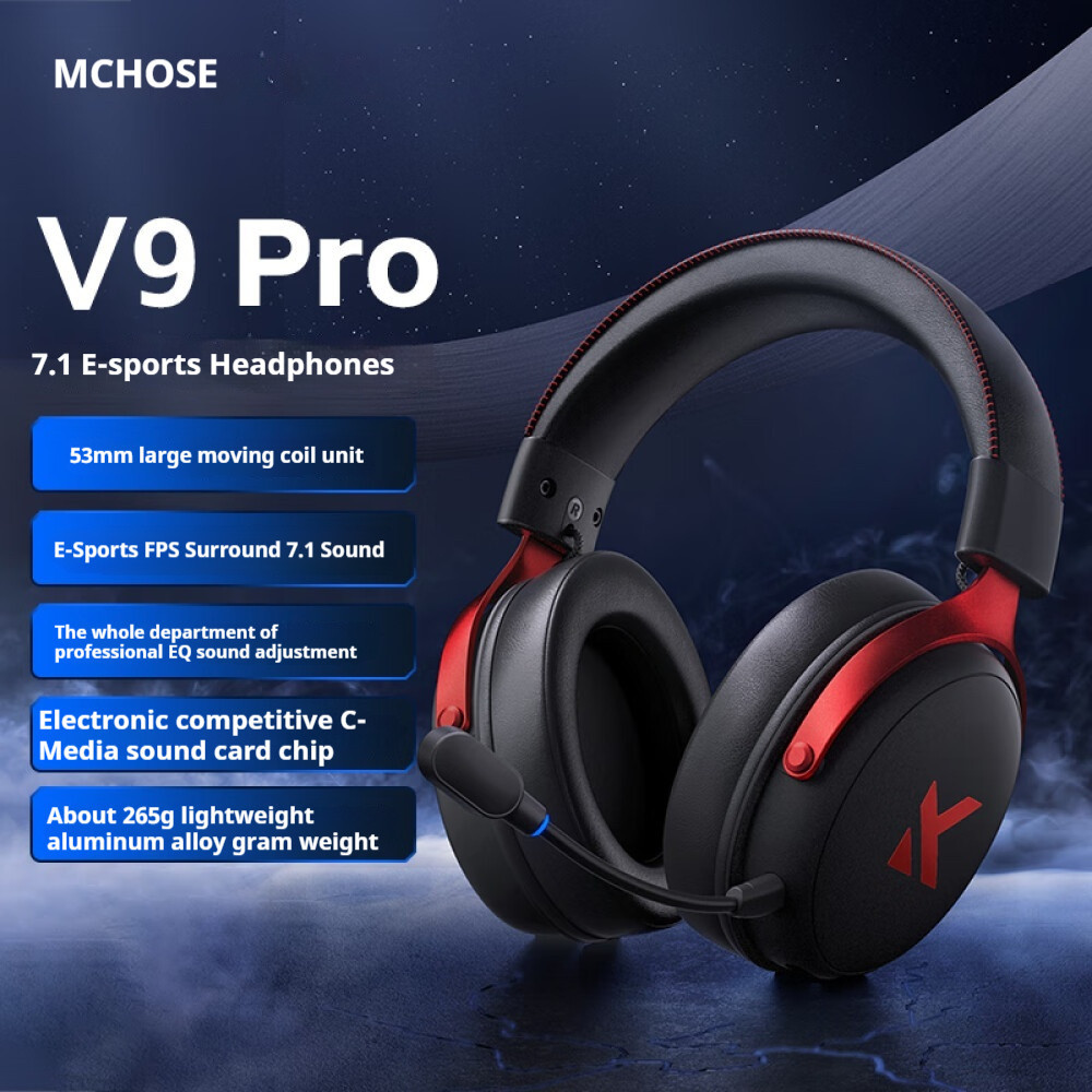 MCHOSE V9 Pro Wireless Three Mode Game Video Game Headset, 360 ° Noise Reduction Microphone, Low Delay USB Video Game Chip Sound Card 7.1 Channel FPS Dedicat