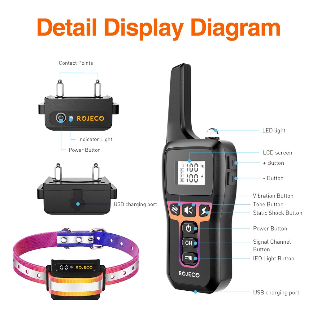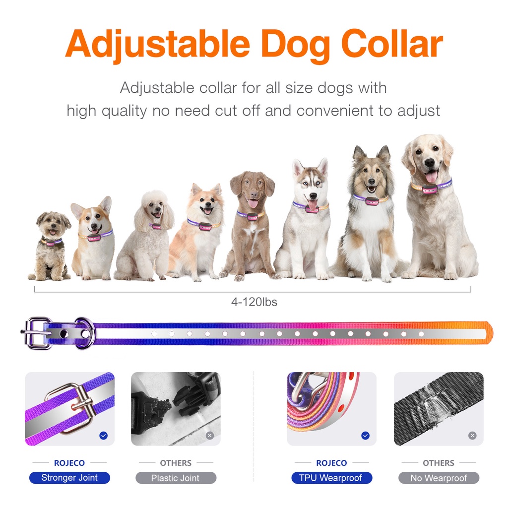 Rojeco Electric Dog Training Collar With Ipx7 Waterproof Shock Remote Refill Vibration Sound 1000M