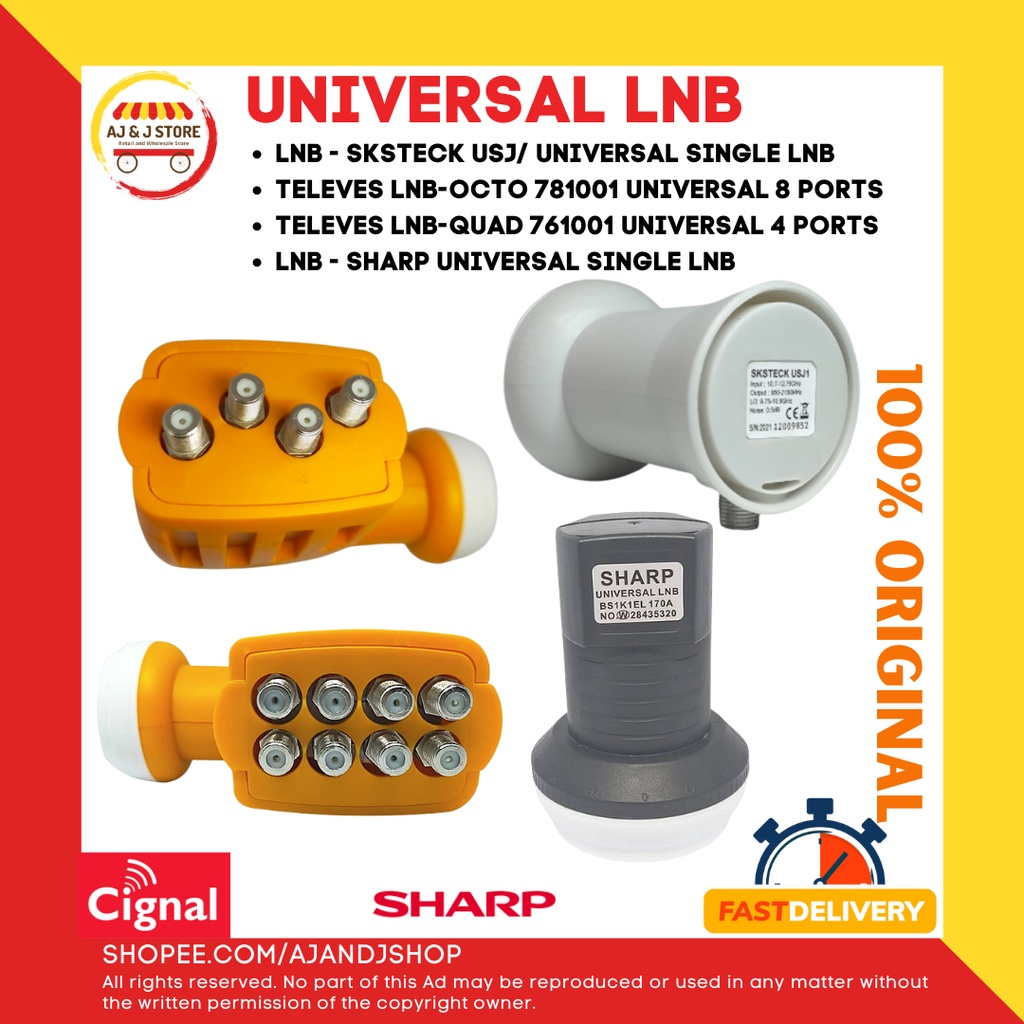 LNB UNIVERSAL WATERPROOF FULL HD SINGLE, QUAD & OCTO FOR ALL SATELITE RECEIVER + FREEBIE