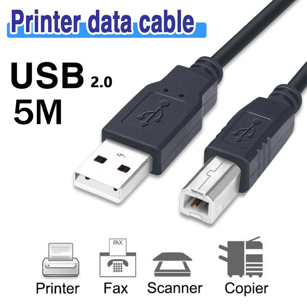 5M USB 2.0 Printer Cable High Speed USB A to B Male Cable Data Line For Printer Fax Scanner