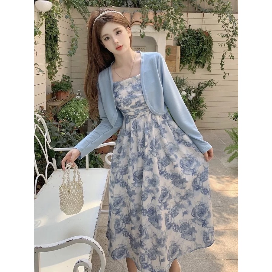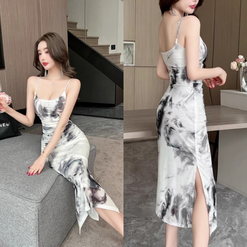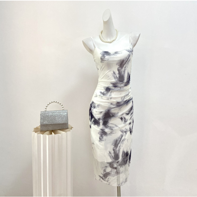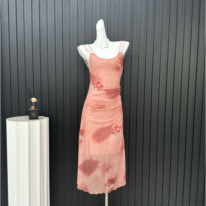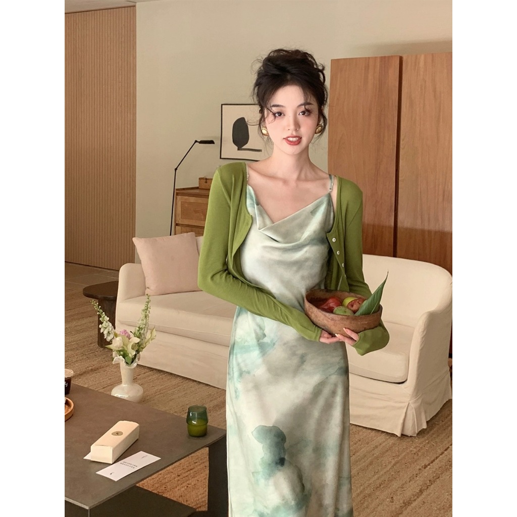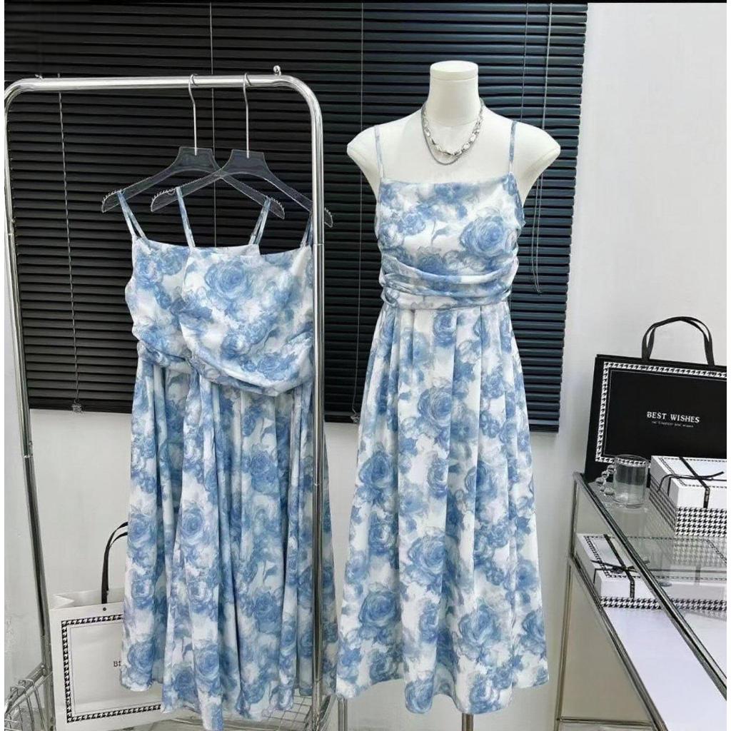 summer green floral midi korean Sleeveless dress for women elegant Strendy backless sunday dress xs