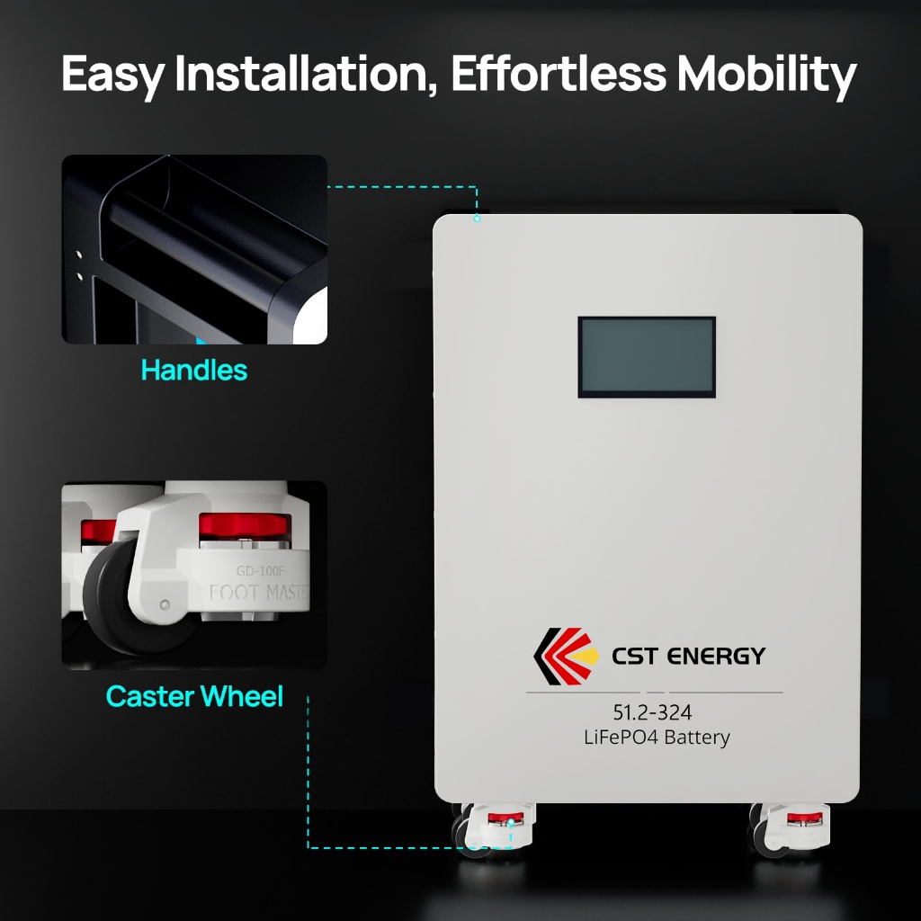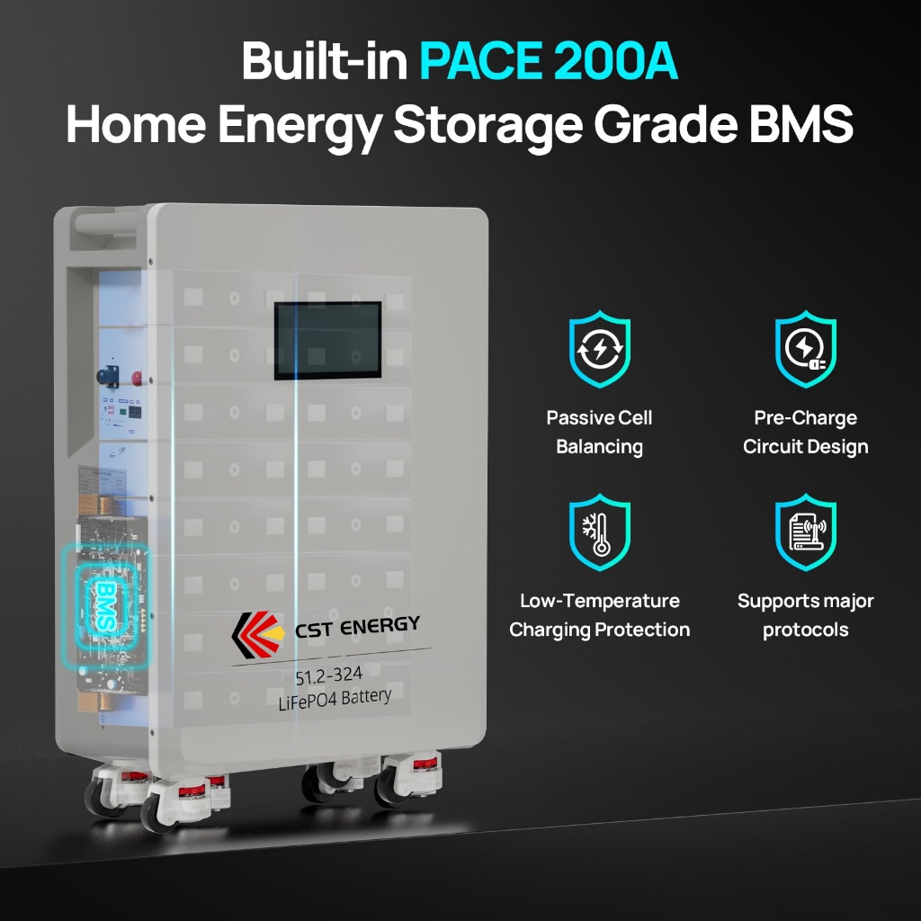 CST ENERGY 51.2V 324Ah/200Ah/100Ah LiFePO4 Lithium Battery for Solar System, Off Grid, Backup Power