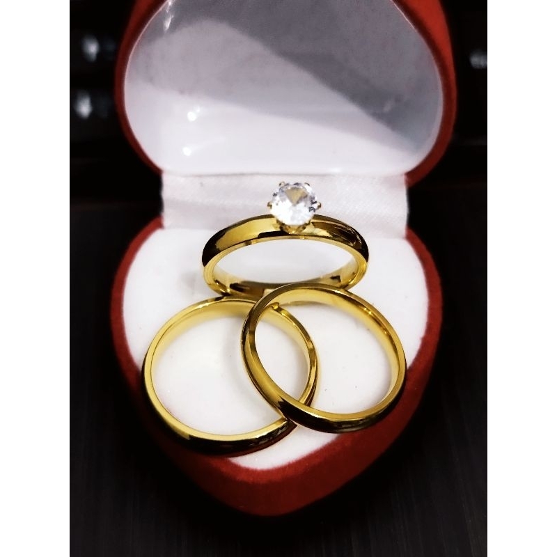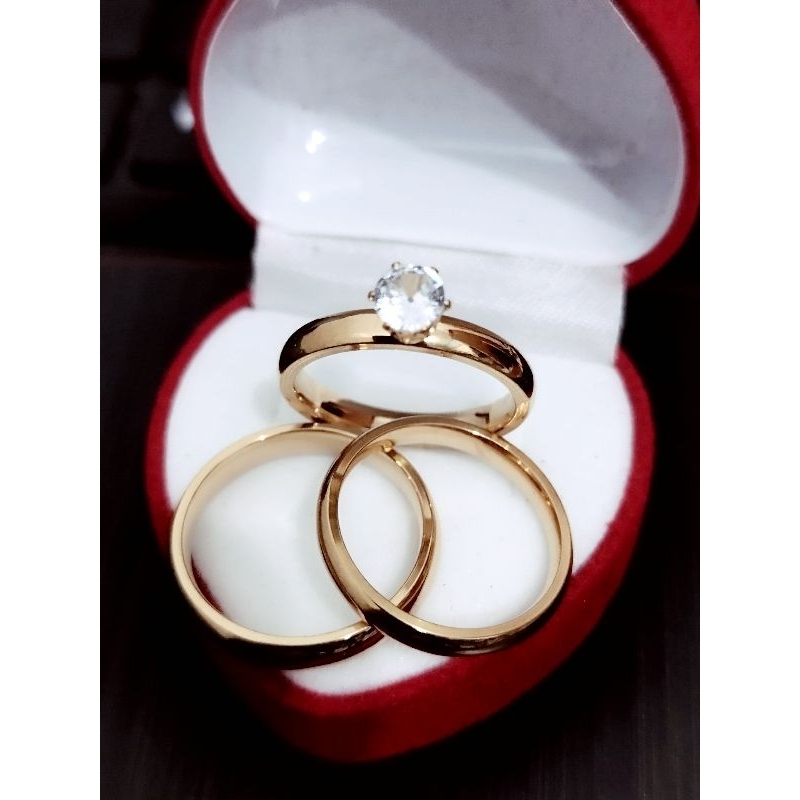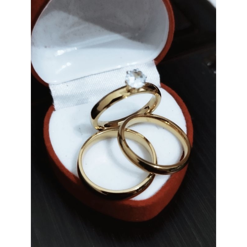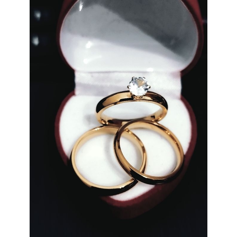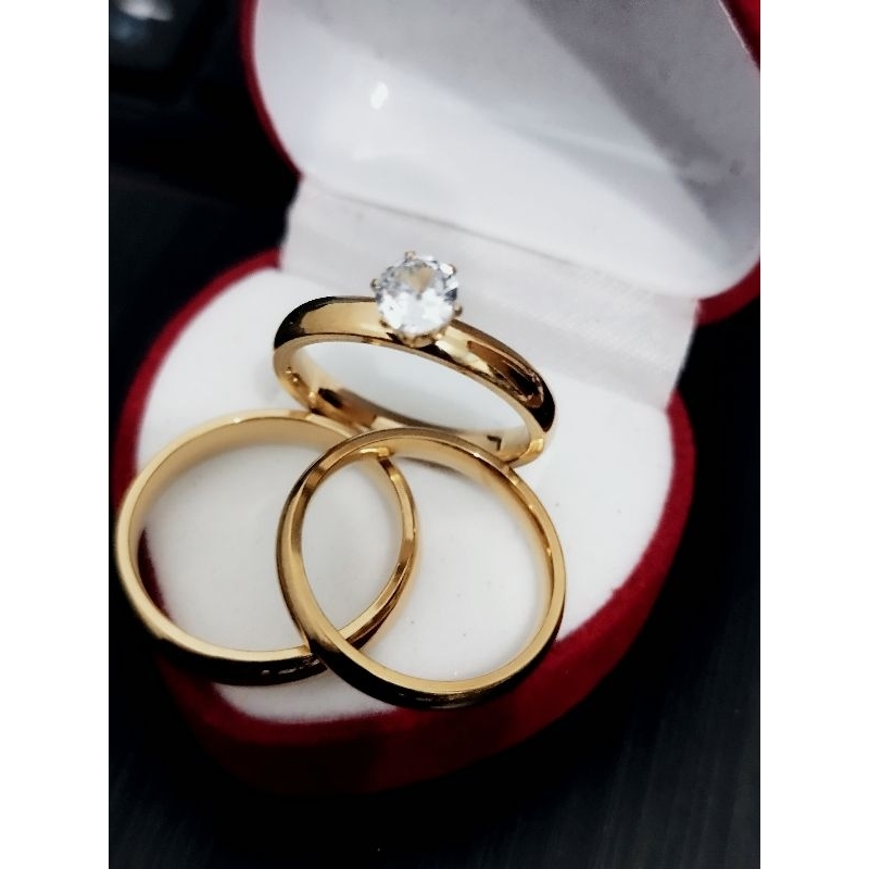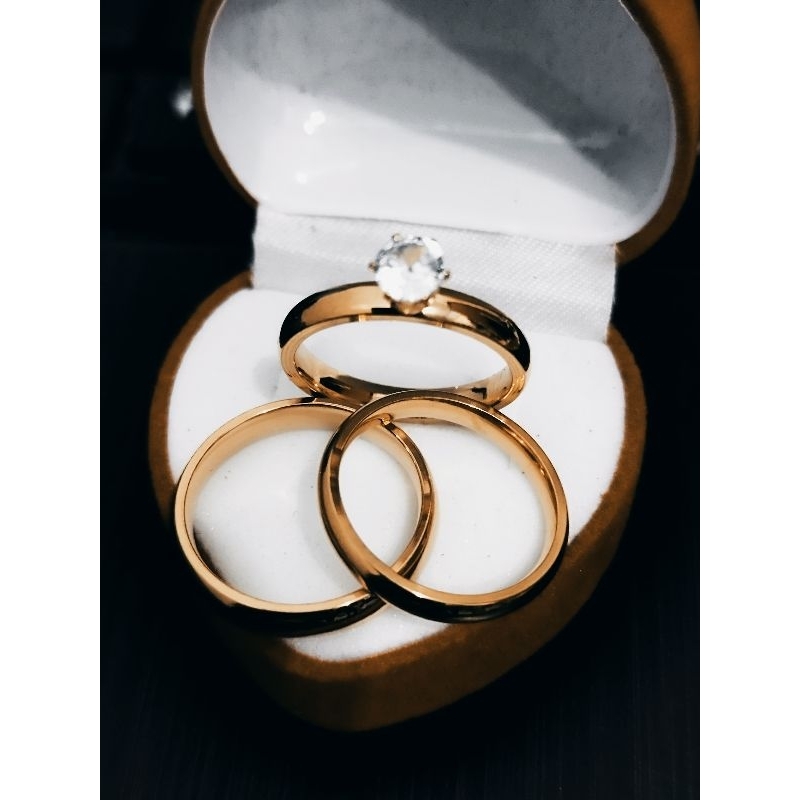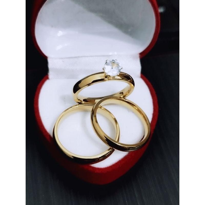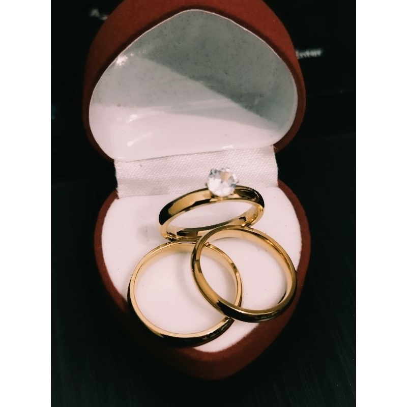 engagement ring wedding ring couple ring+ velvet box non fade