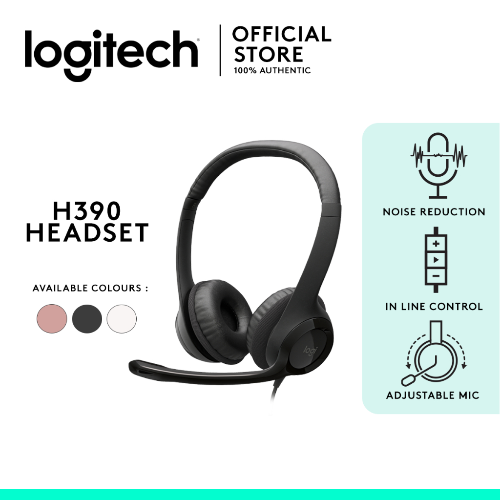 Logitech Headset H390 Rotating Noise Reduction Mic, Digital Stereo Sound, Wired On Ear USB