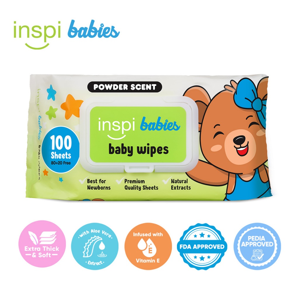 INSPI Babies Premium Baby Wipes Powder Scent 300 Tender Sheets 3 Packs Wet Wipes for Baby Newborn