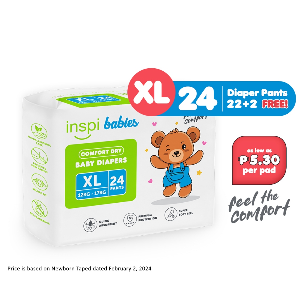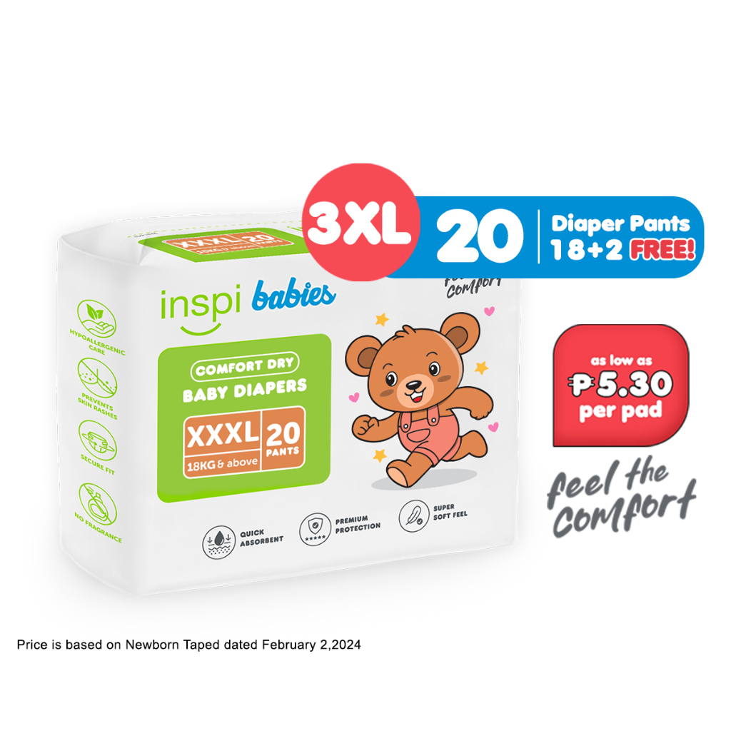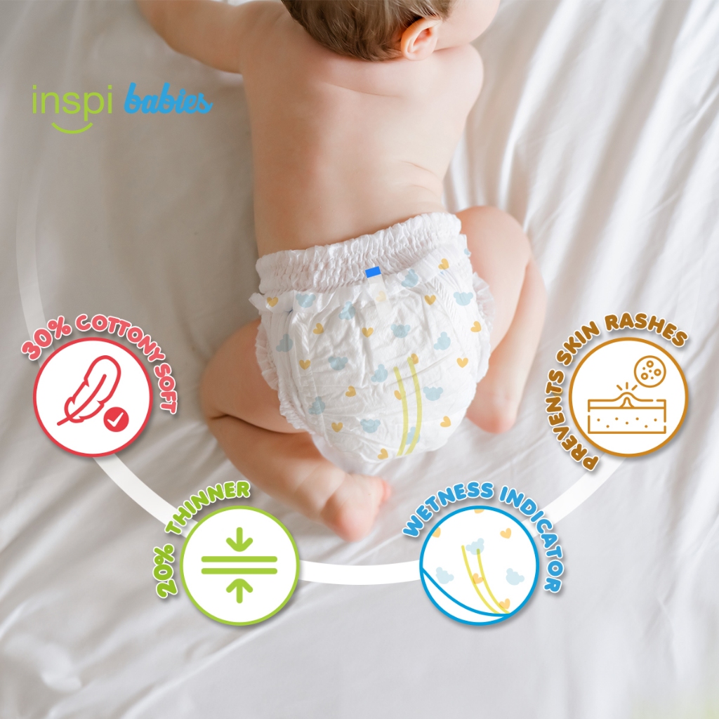 INSPI Babies Comfort Dry Baby Diaper for Baby Pants Medium to 3XL (XXXL) Pack of 1 Baby Needs