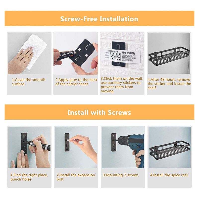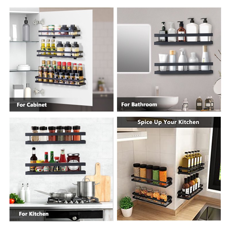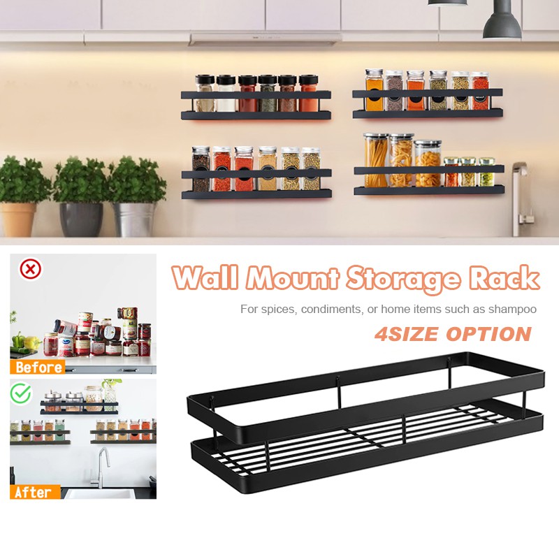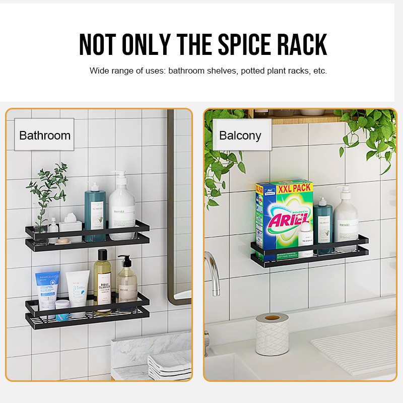Kitchen Storage Rack Spice Organizer Condiment Holder Bathroom Shelf Wall-mounted Hanging Rack