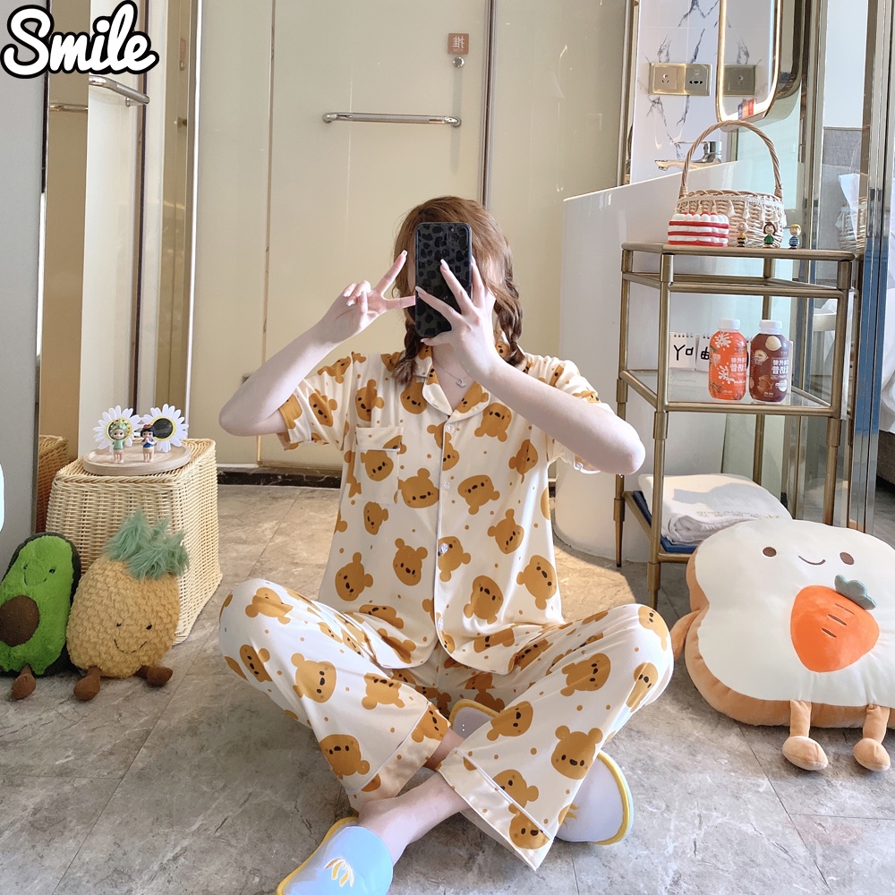 Smile M-2XL korean cotton short sleeve cartoon design comfortable pajamas/sleepwear for women