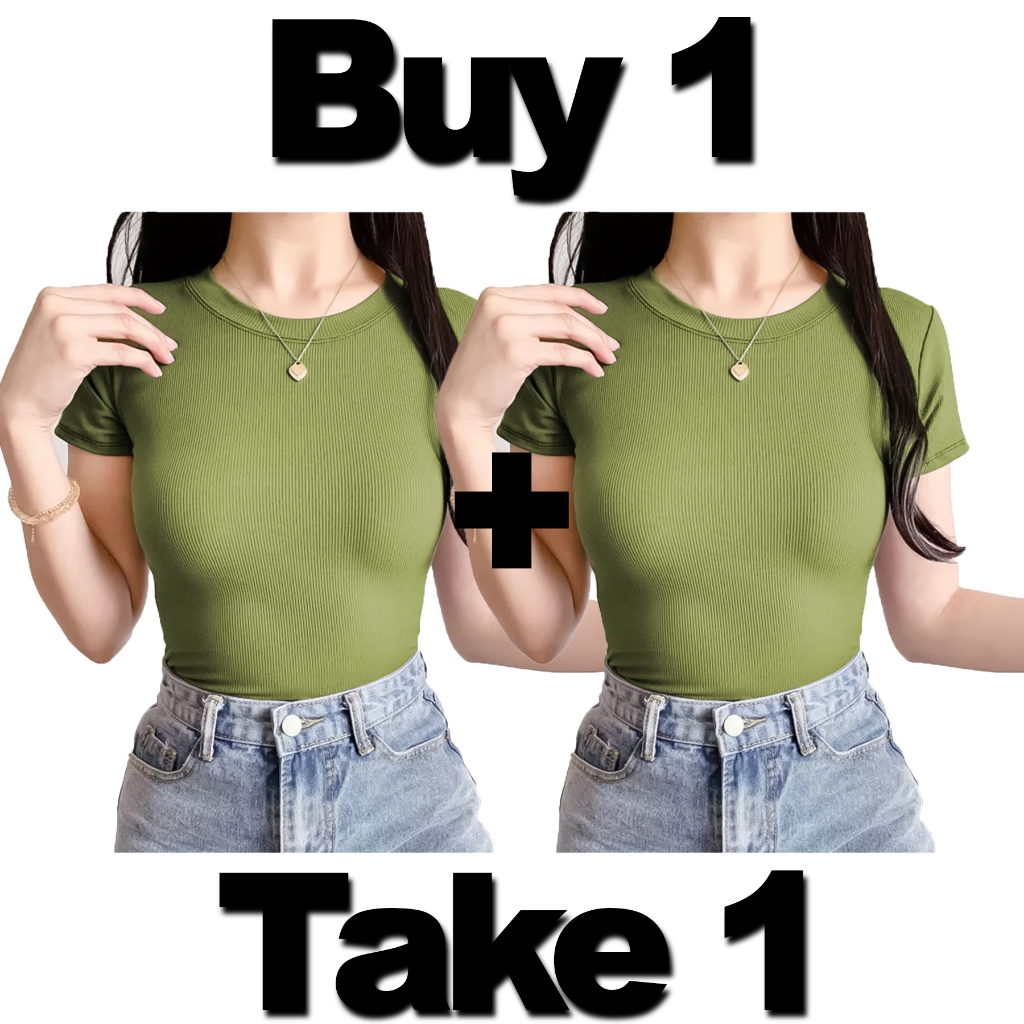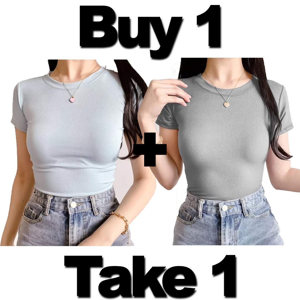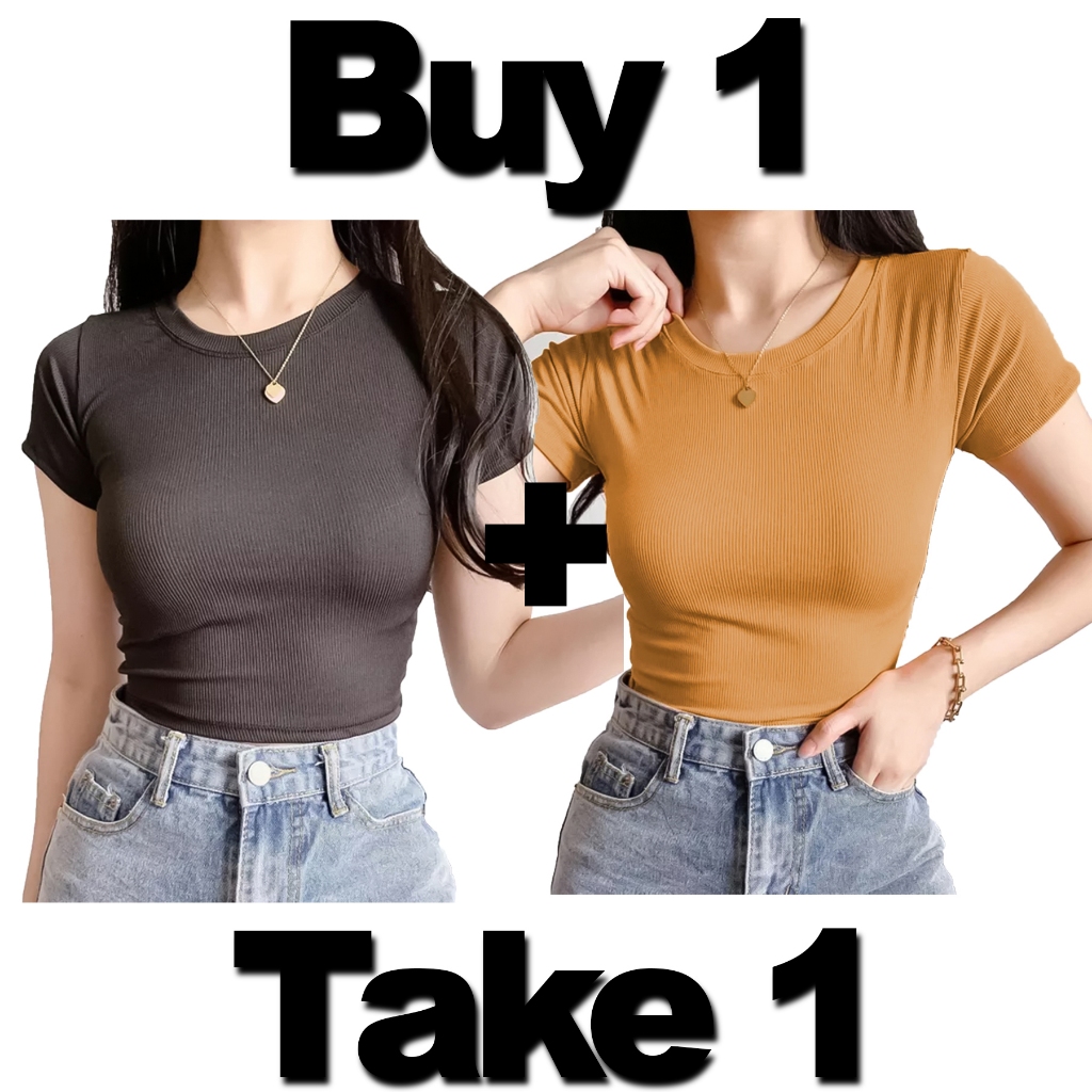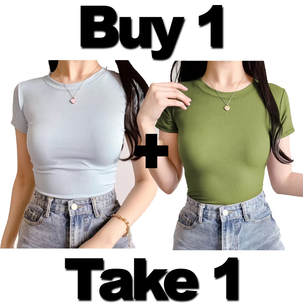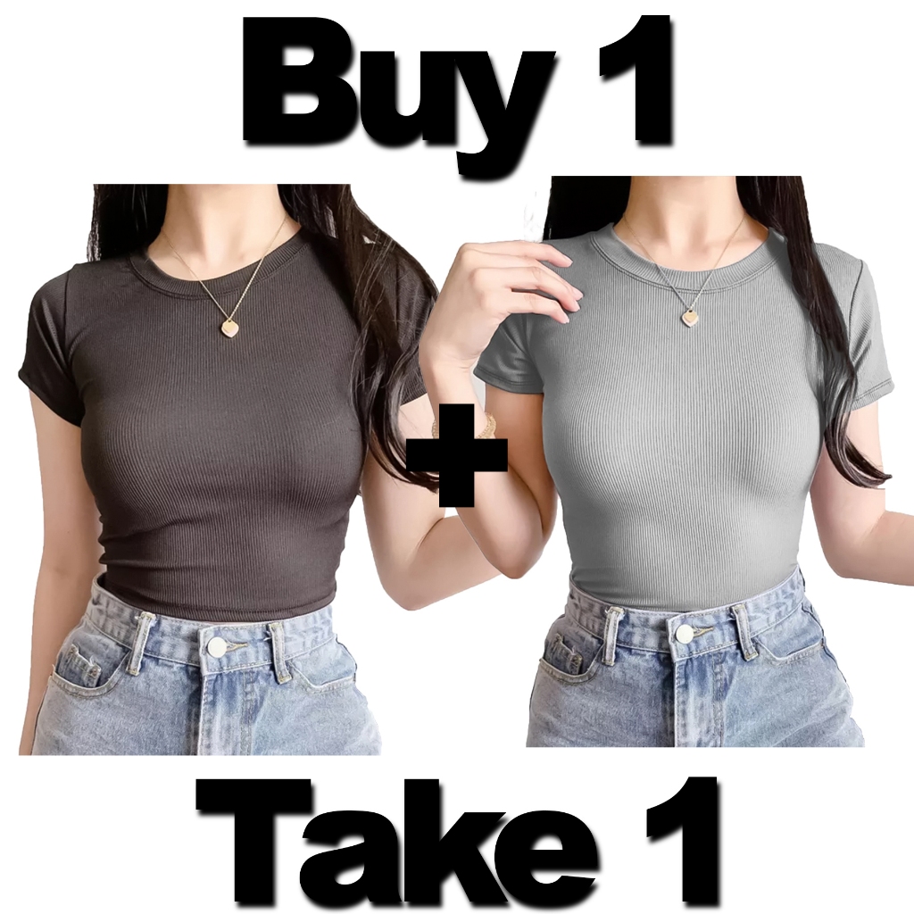 SS B1T1 Korean Basic Blouse Top Women Short Sleeve Tops Fits Small to Semi-Large
