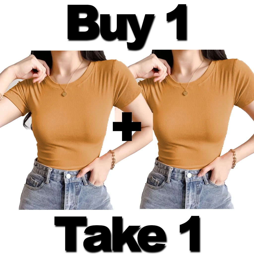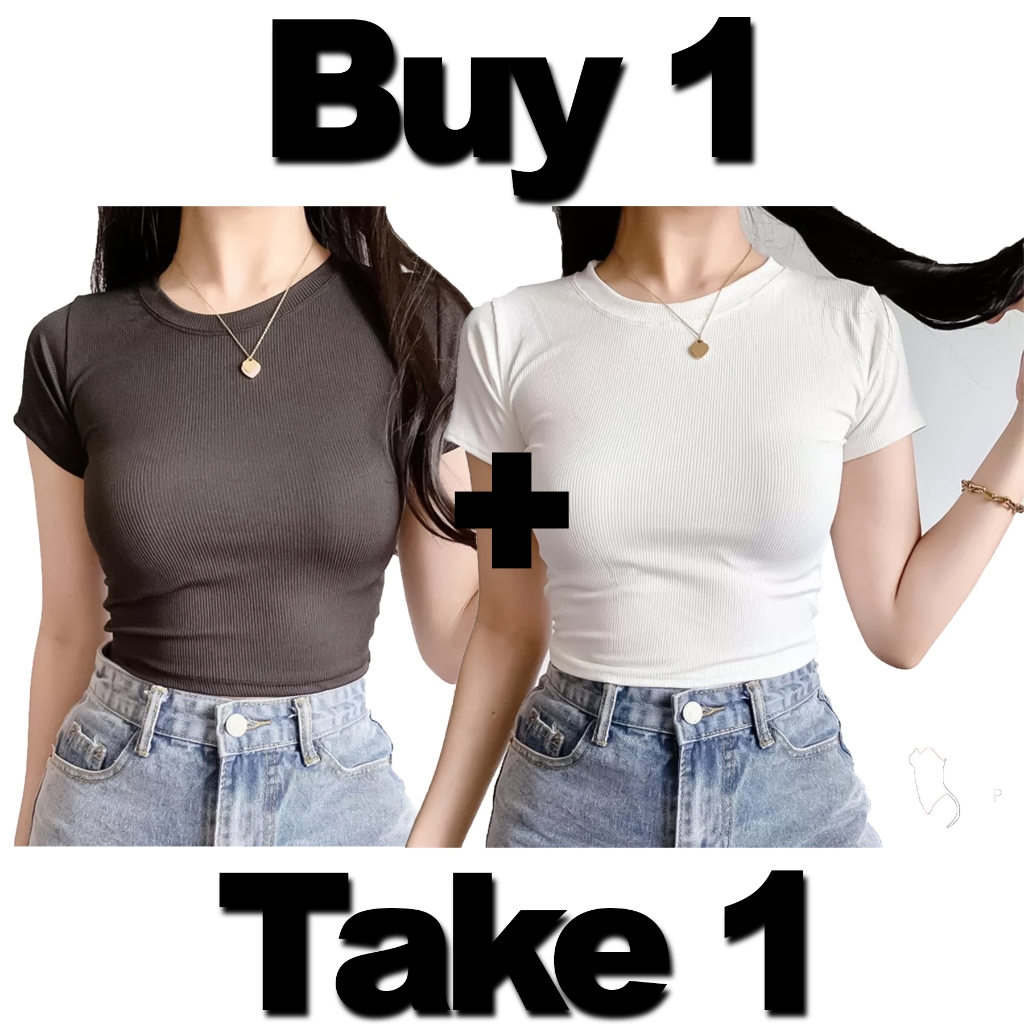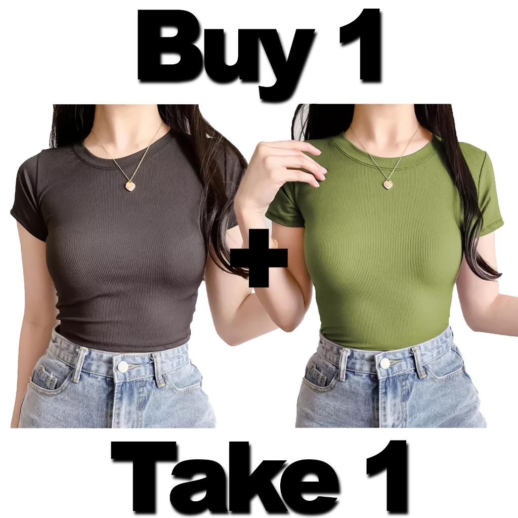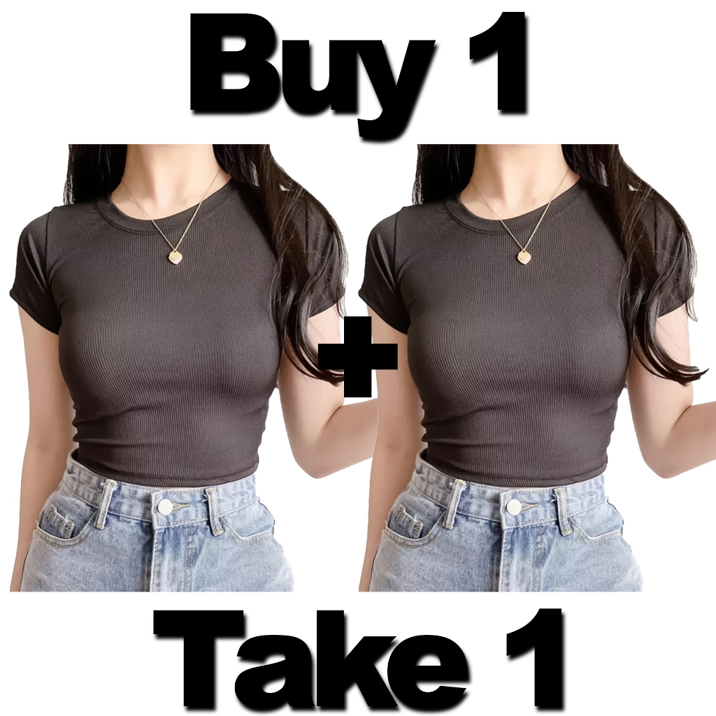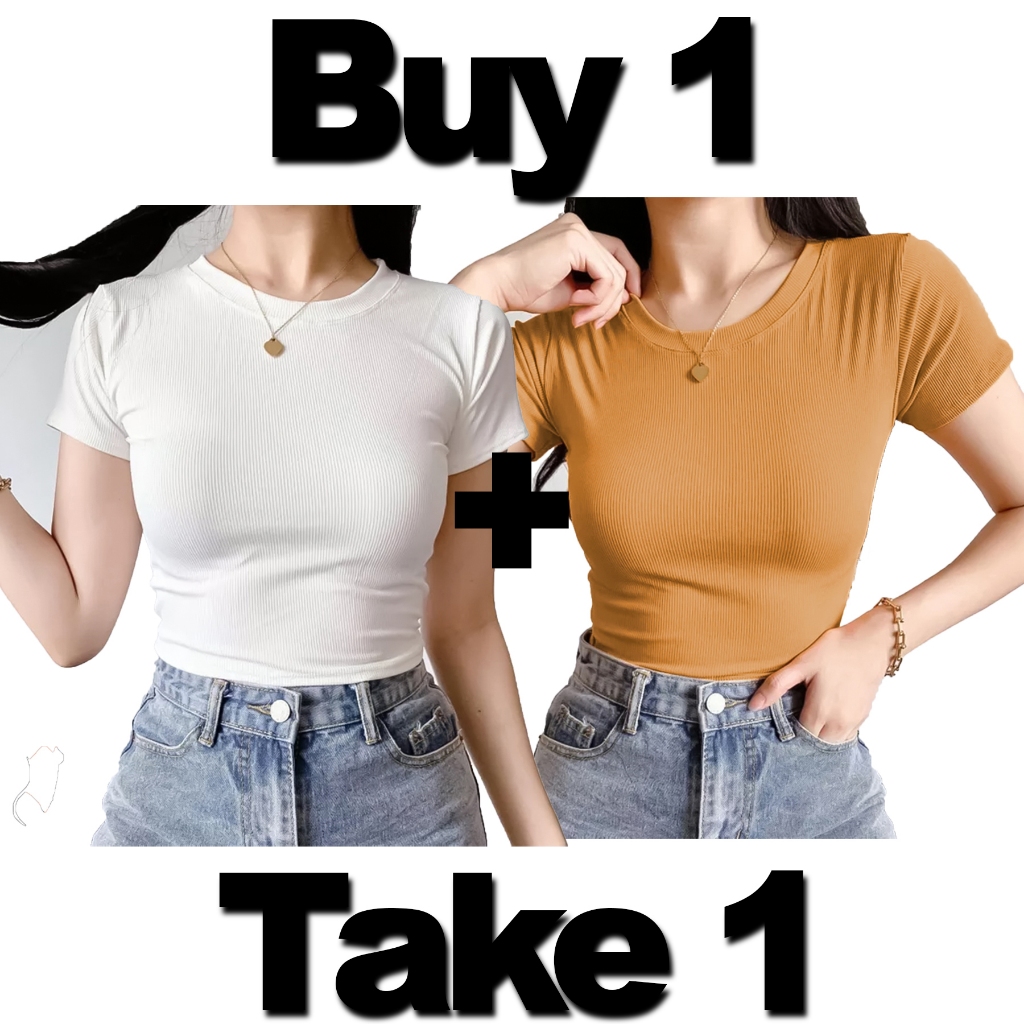 SS B1T1 Korean Basic Blouse Top Women Short Sleeve Tops Fits Small to Semi-Large