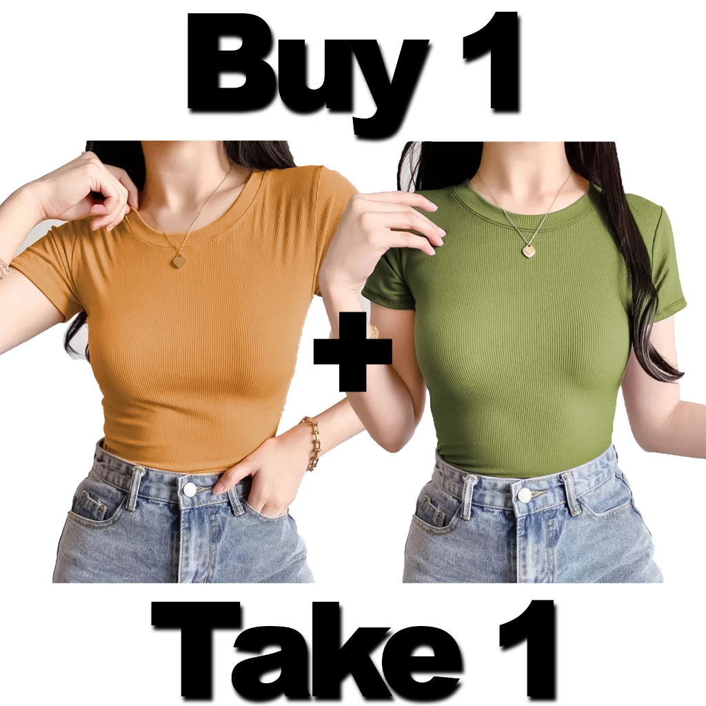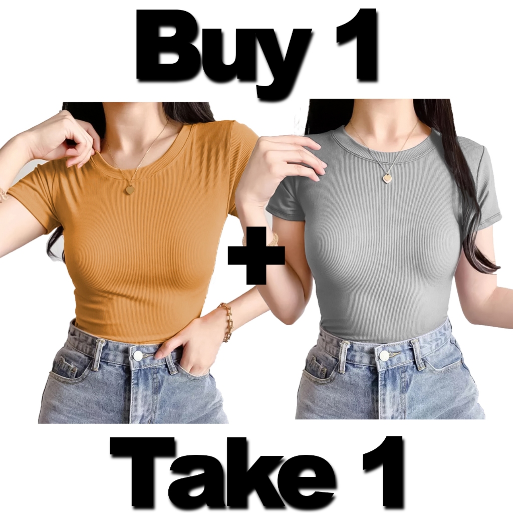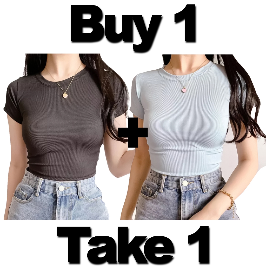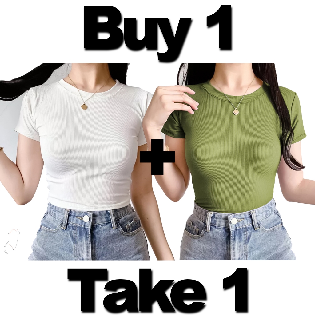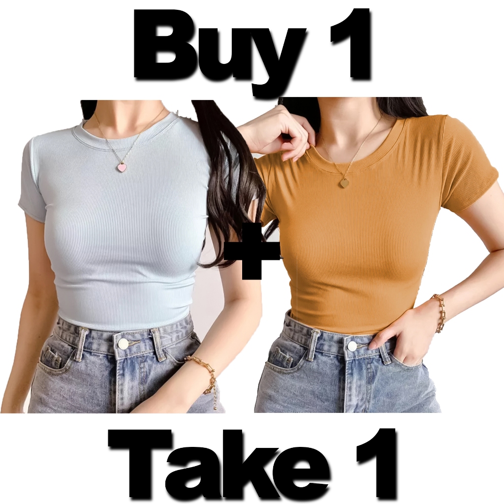 SS B1T1 Korean Basic Blouse Top Women Short Sleeve Tops Fits Small to Semi-Large