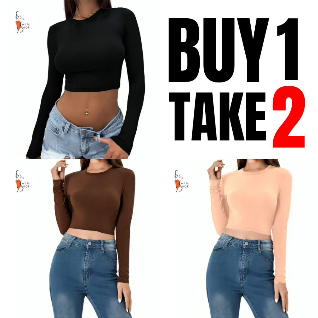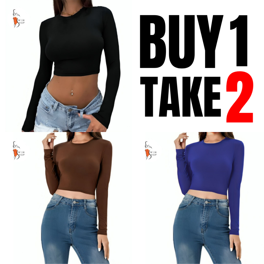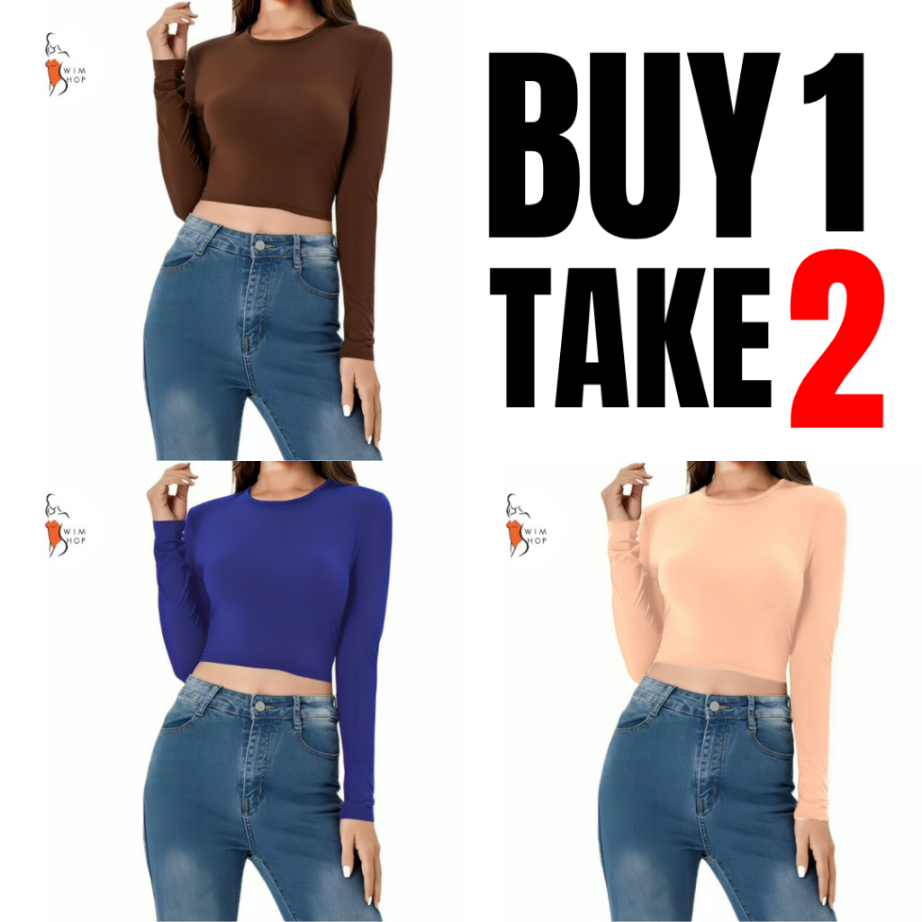 SS BUY 1 TAKE 2 KRYM Double Lining Long sleeve Crop Top Comfortable for Womens