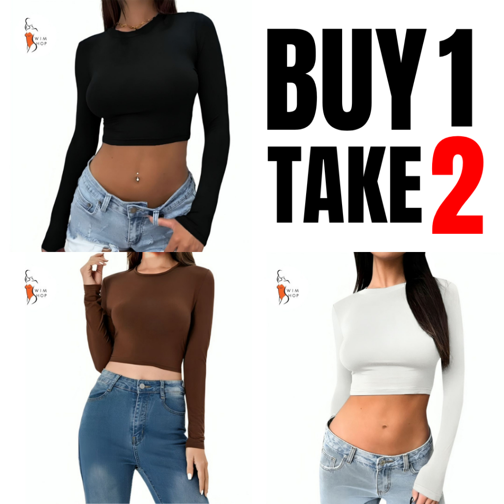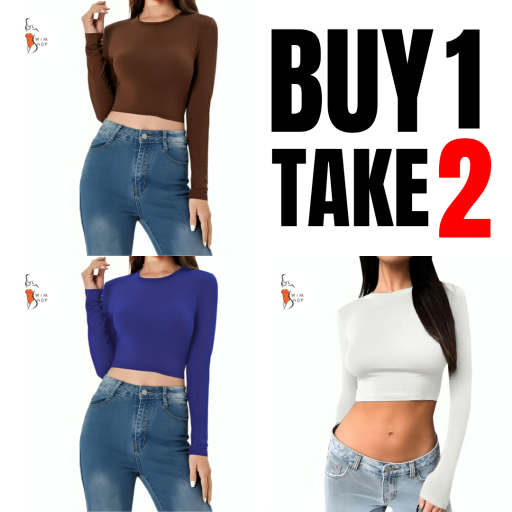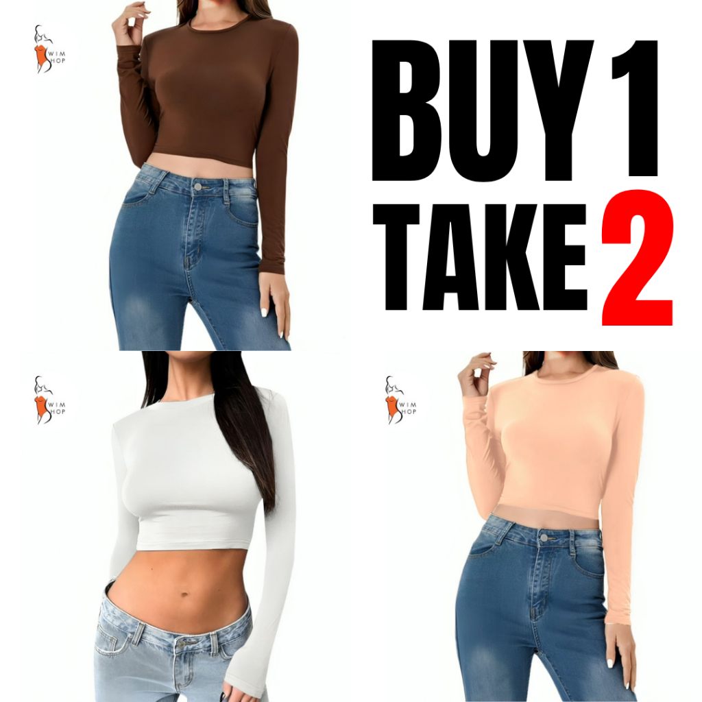 SS BUY 1 TAKE 2 KRYM Double Lining Long sleeve Crop Top Comfortable for Womens
