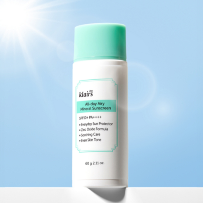 Klairs All Day Airy Mineral Sunscreen SPF50+ PA++++ – Lightweight, Non-Greasy Tone-Up UV Shield(60g)