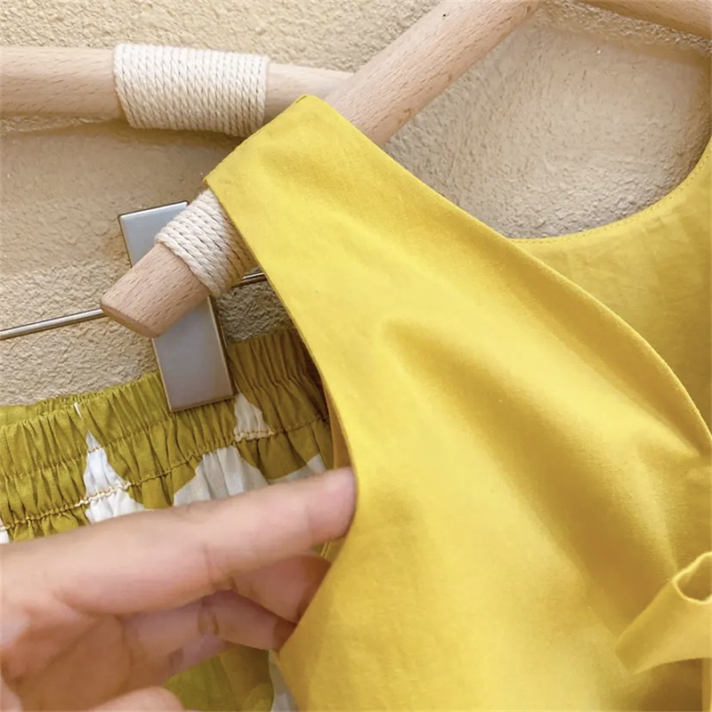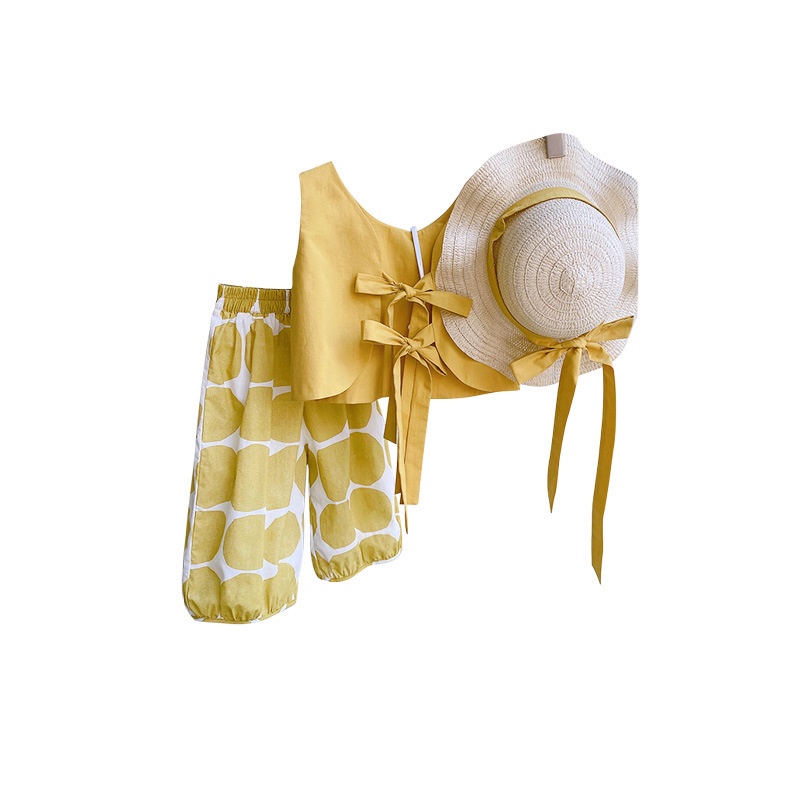 Korean Style Pastoral Style Backless Thin Suit Pullover Girls' Vest Top Polka Dot Bloomers Three-Piece Set [1-9 years old]