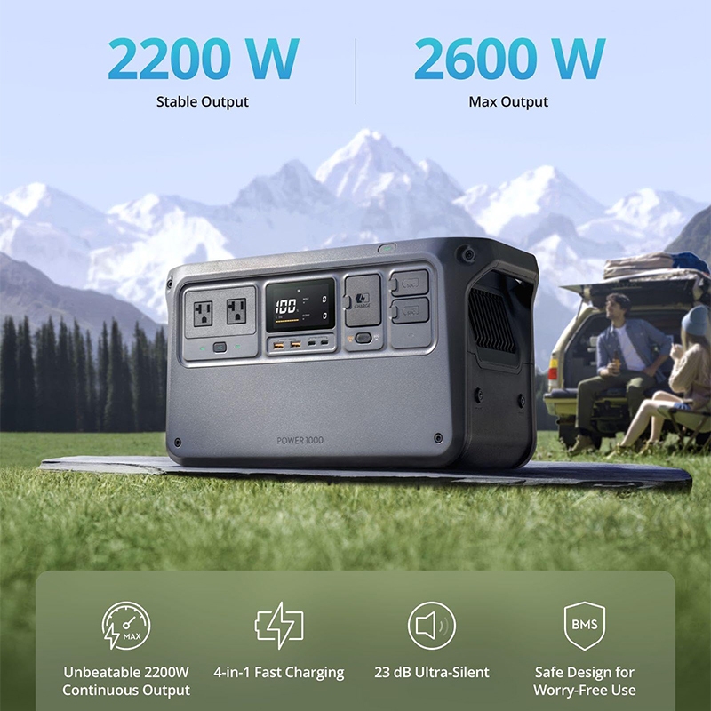 DJI 1000 Portable Power Station 1024Wh Lifepo4 Battery 2600W AC Output 220V 60Hz Solar Generator