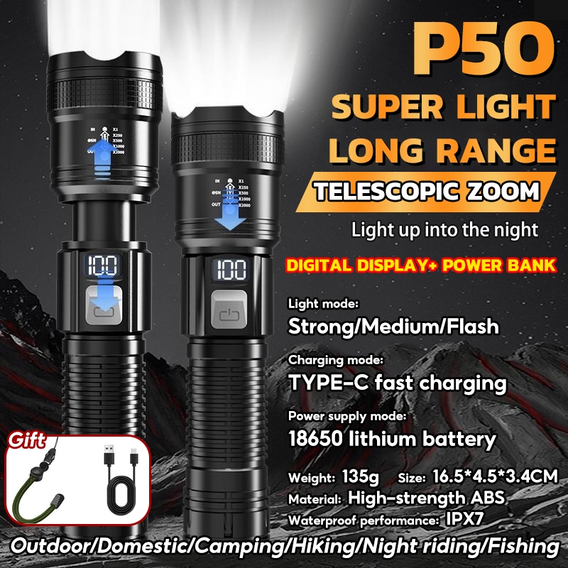 JAPAN Flashlights heavy duty LED Flashlight Rechargeable Waterproof Outdoor work light original zoom