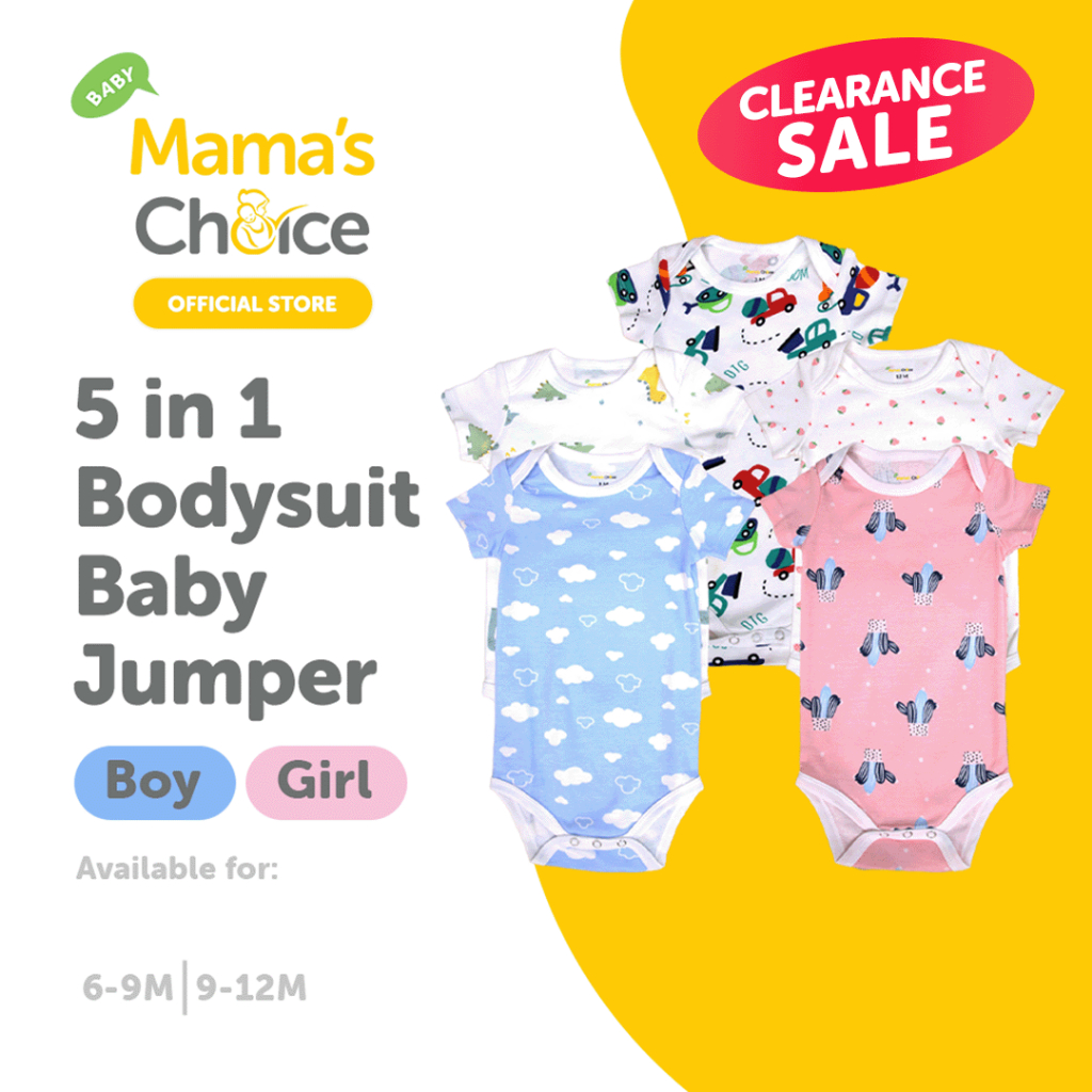 Mama's Choice Baby Bodysuit Jumper | 5 Pcs | 100% Cotton Romper w/ Bottom Snap Buttons | 0-12 Months