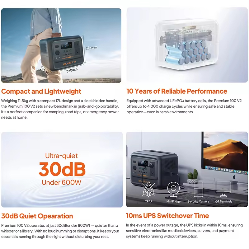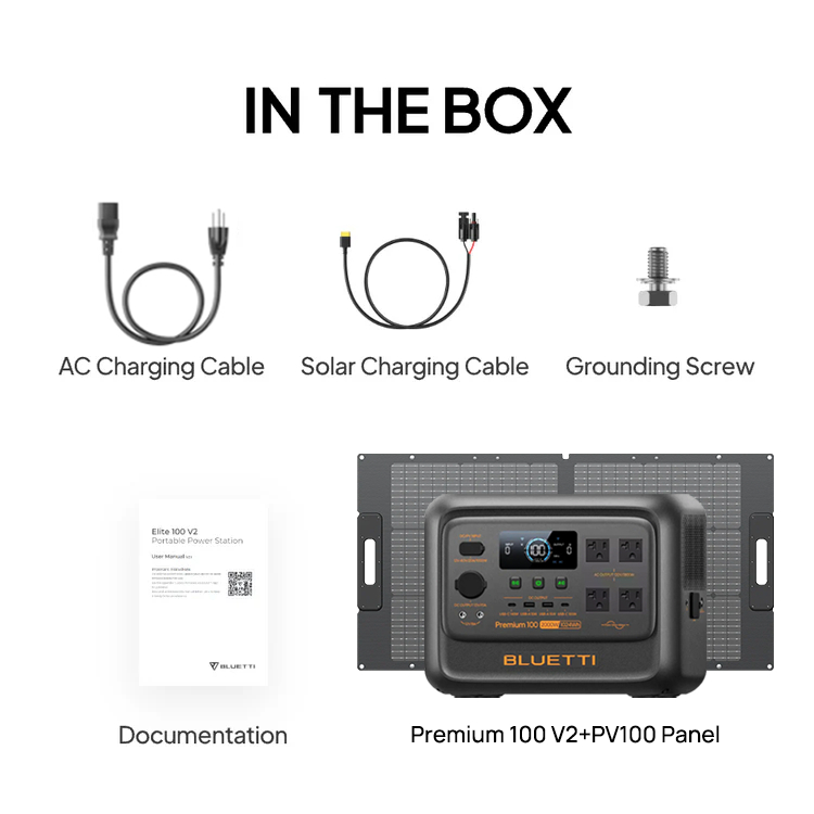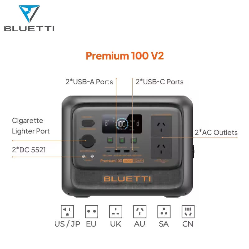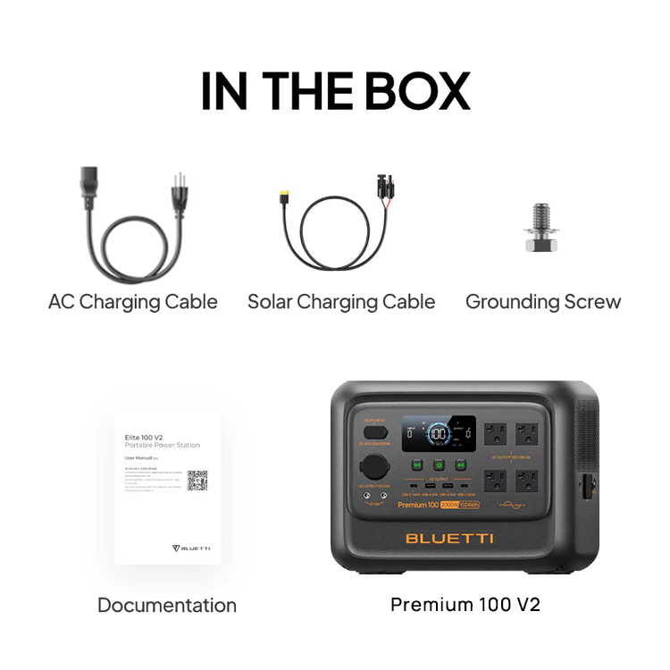 Bluetti Premium 100 V2 Power Station,2000W(3600W Surge) | 1024Wh LiFePO4,Solar Generator with UPS