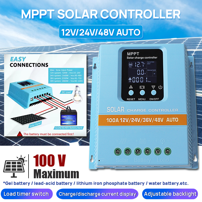 100A Solar MPPT Charge Controller 12V/24V/36V/48V Auto LCD Display Max 100V Input,Light/Time control