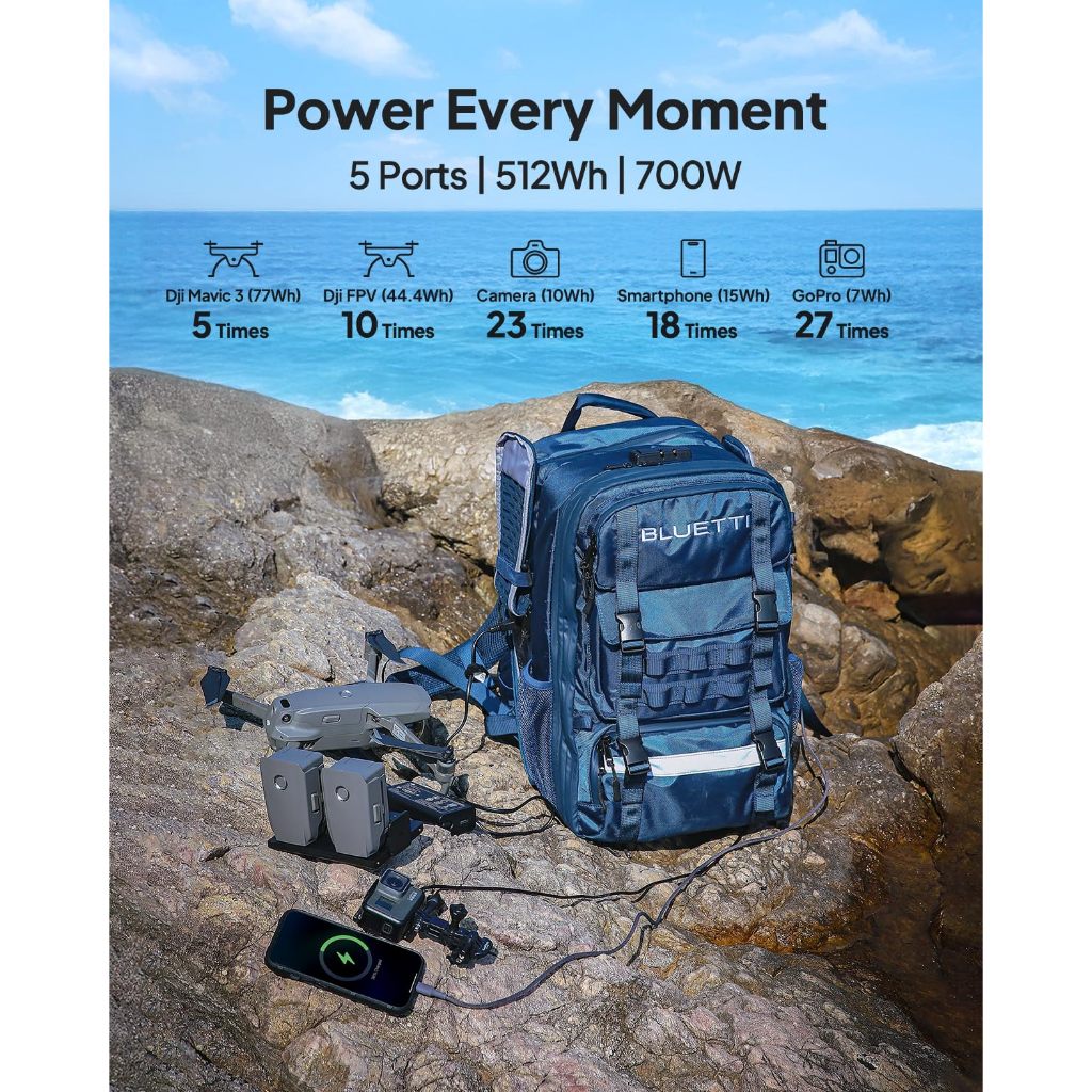 BLUETTI Solar Generator Handsfree2 Backpack, 512Wh 700W LiFePO4 Battery with a 60L Drone Backpack