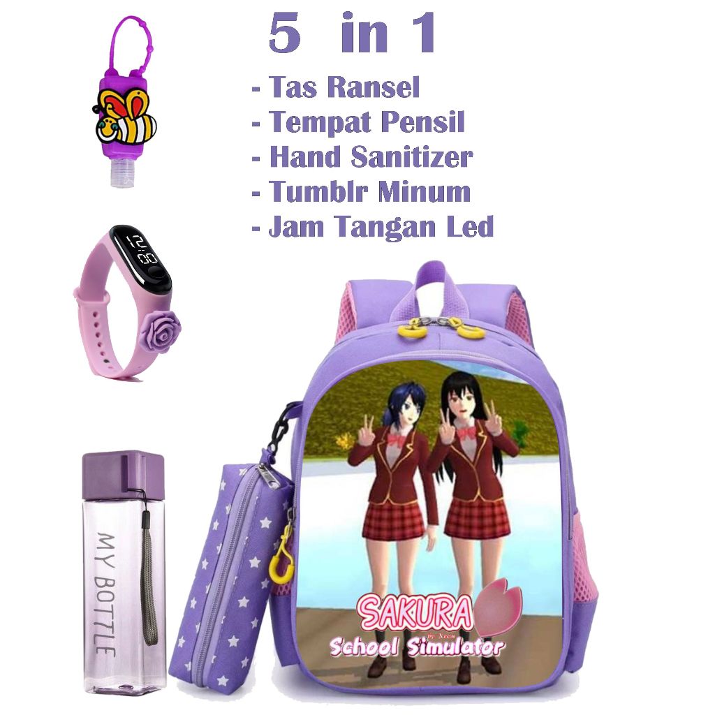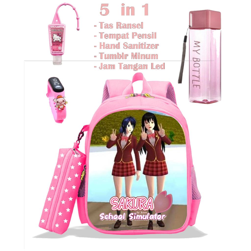 5-in-1 Package of Girls' SCHOOL Backpacks with SAKURA SCHOOL SIMULATOR Characters, PREMIUM Quality Bag for Kids Girl School Bag for Kids Girl