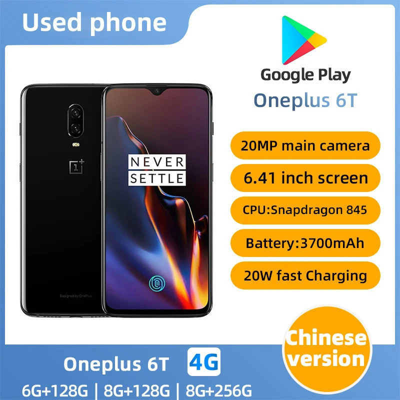 Oneplus 6T 4G LTE Mobile Phone Snapdragon 845 6.41" 20MP 16MP Fingerprint used phone PEY6