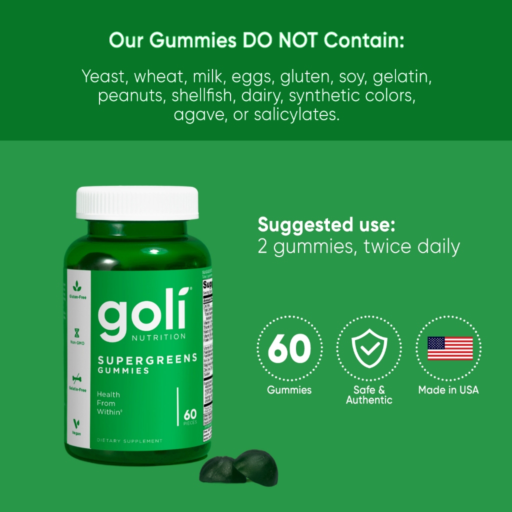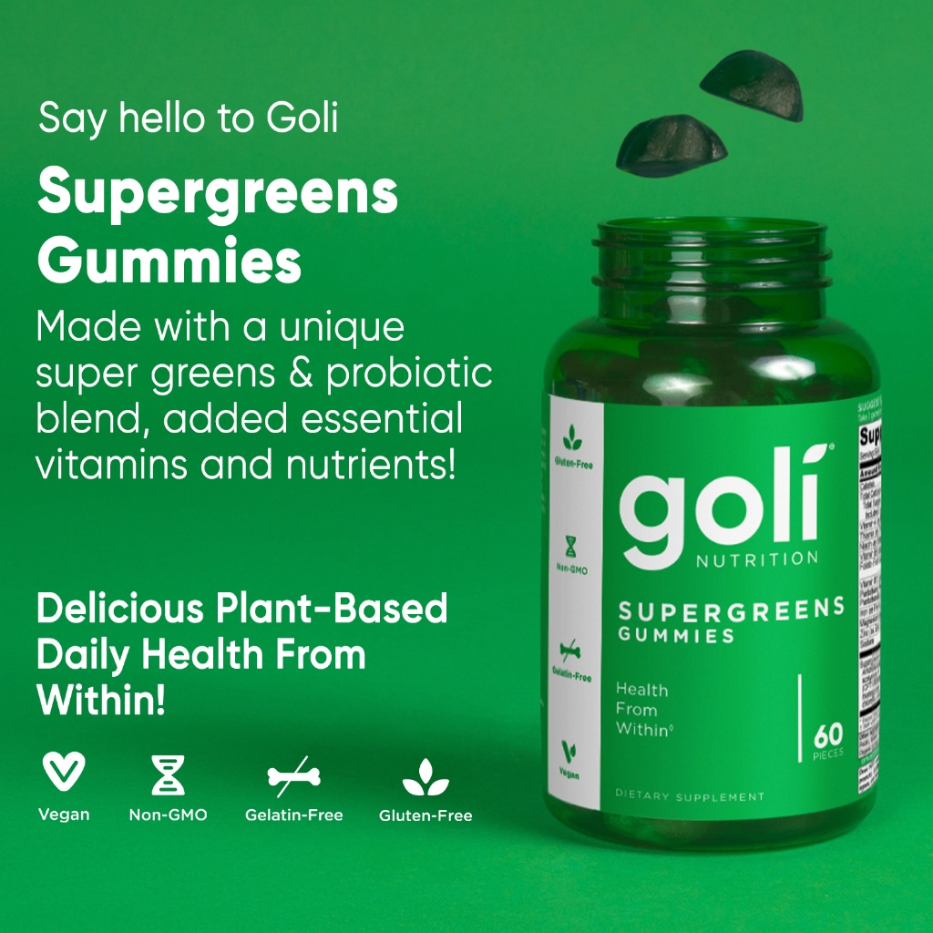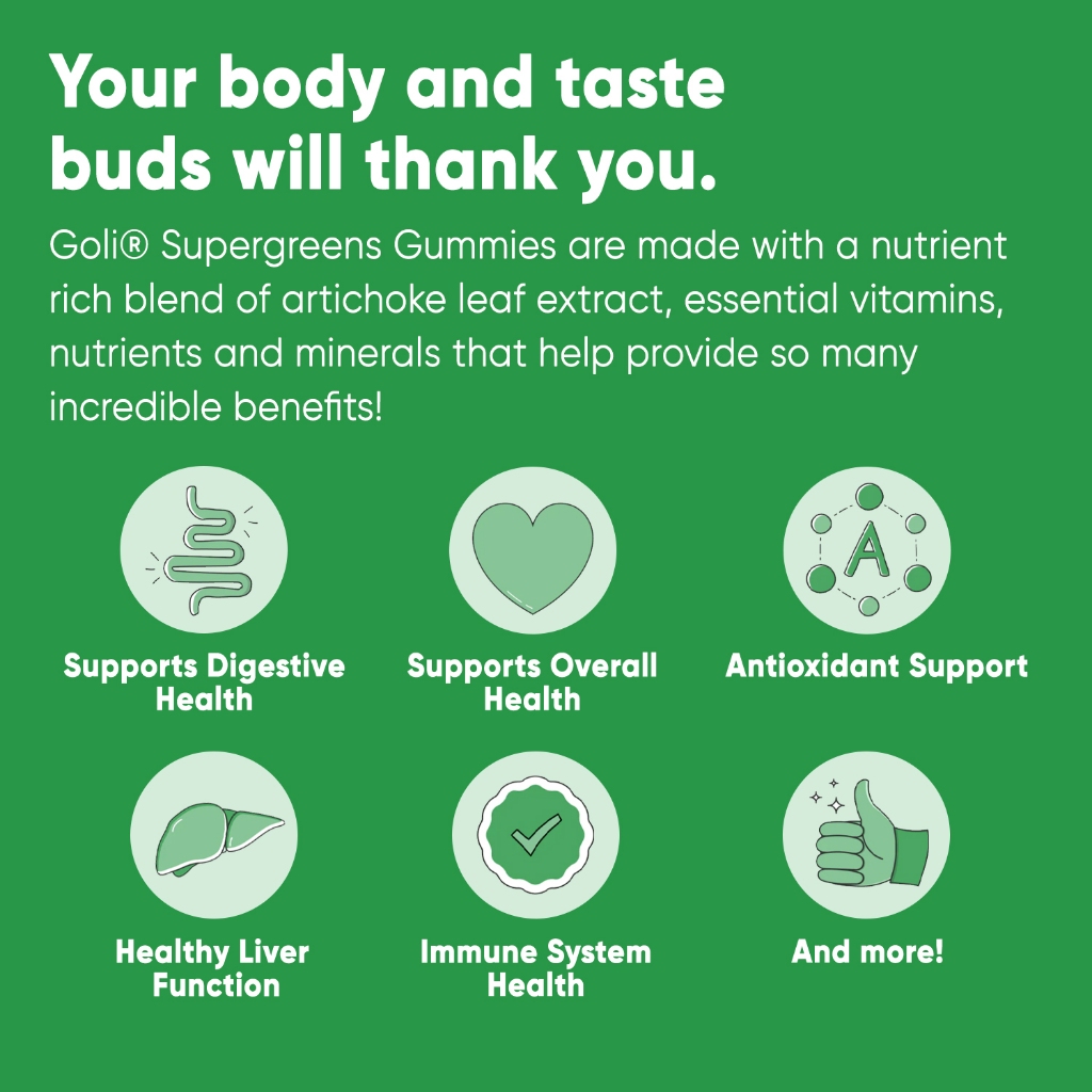 Goli Nutrition Supergreens 60 Gummies for Daily Liver, Detox & Digestive Wellness