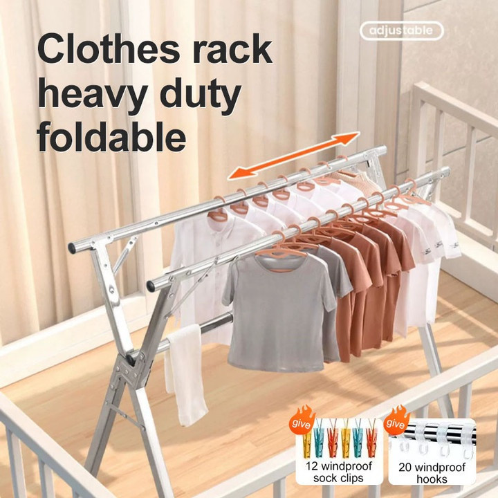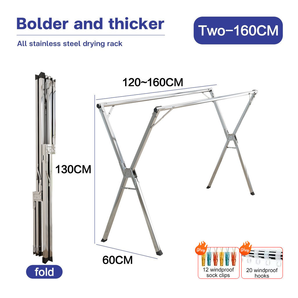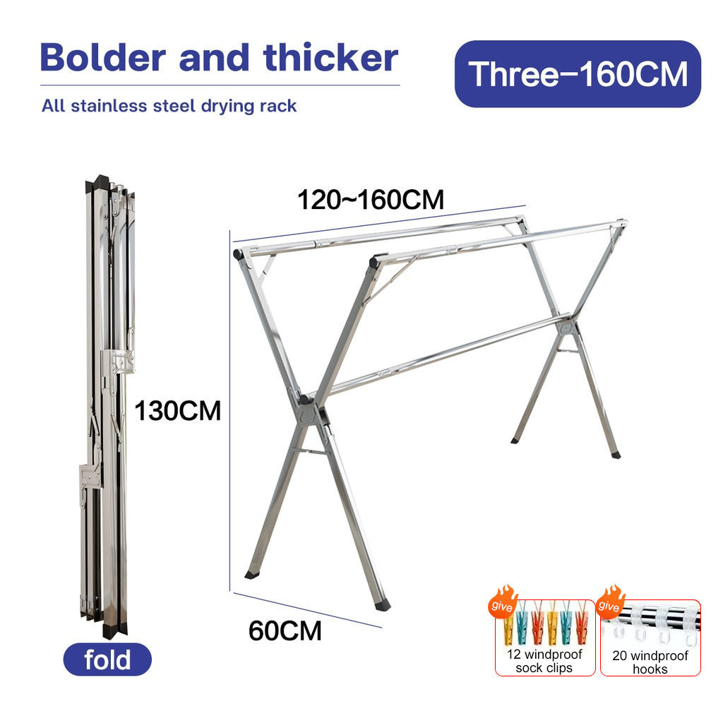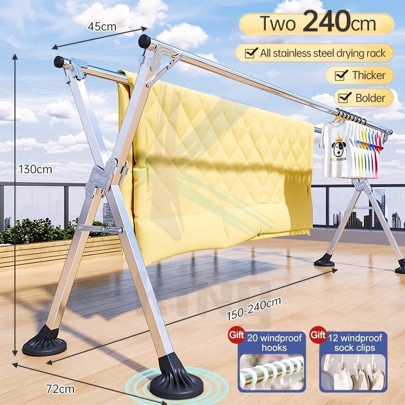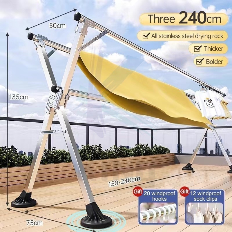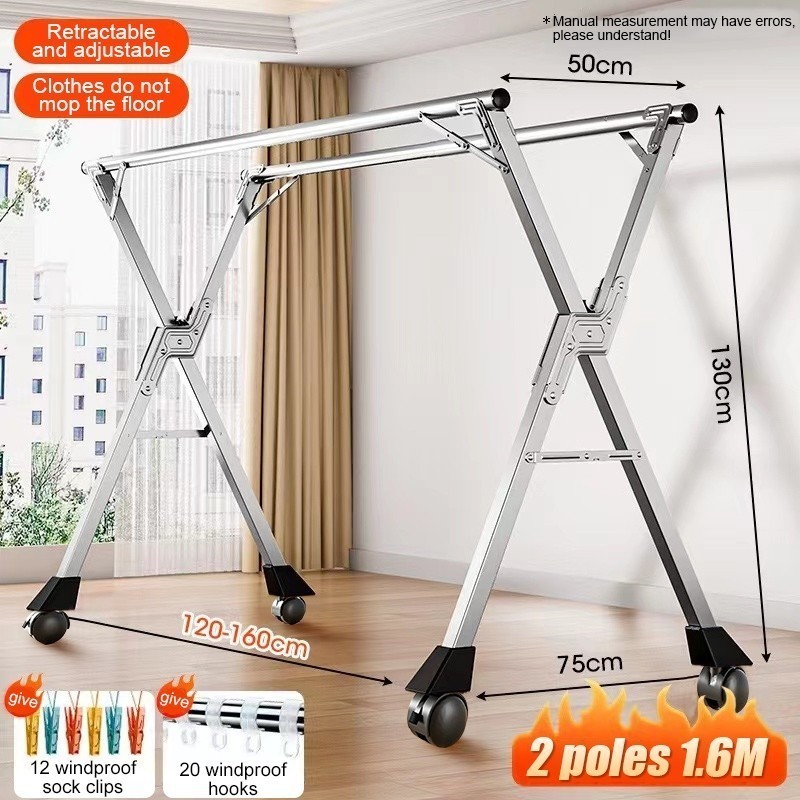 Foldable Hanger Stainless Steel Windproof Laundry Drying Rack Sampayan Clothes Rack With Wheel
