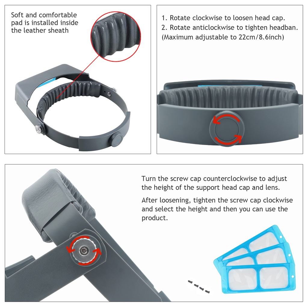 1set Double Lens Head-mounted Reading Magnifier Head Wearing Magnifying Eye Loupe Headband Watch Repair Glasses Loupe
