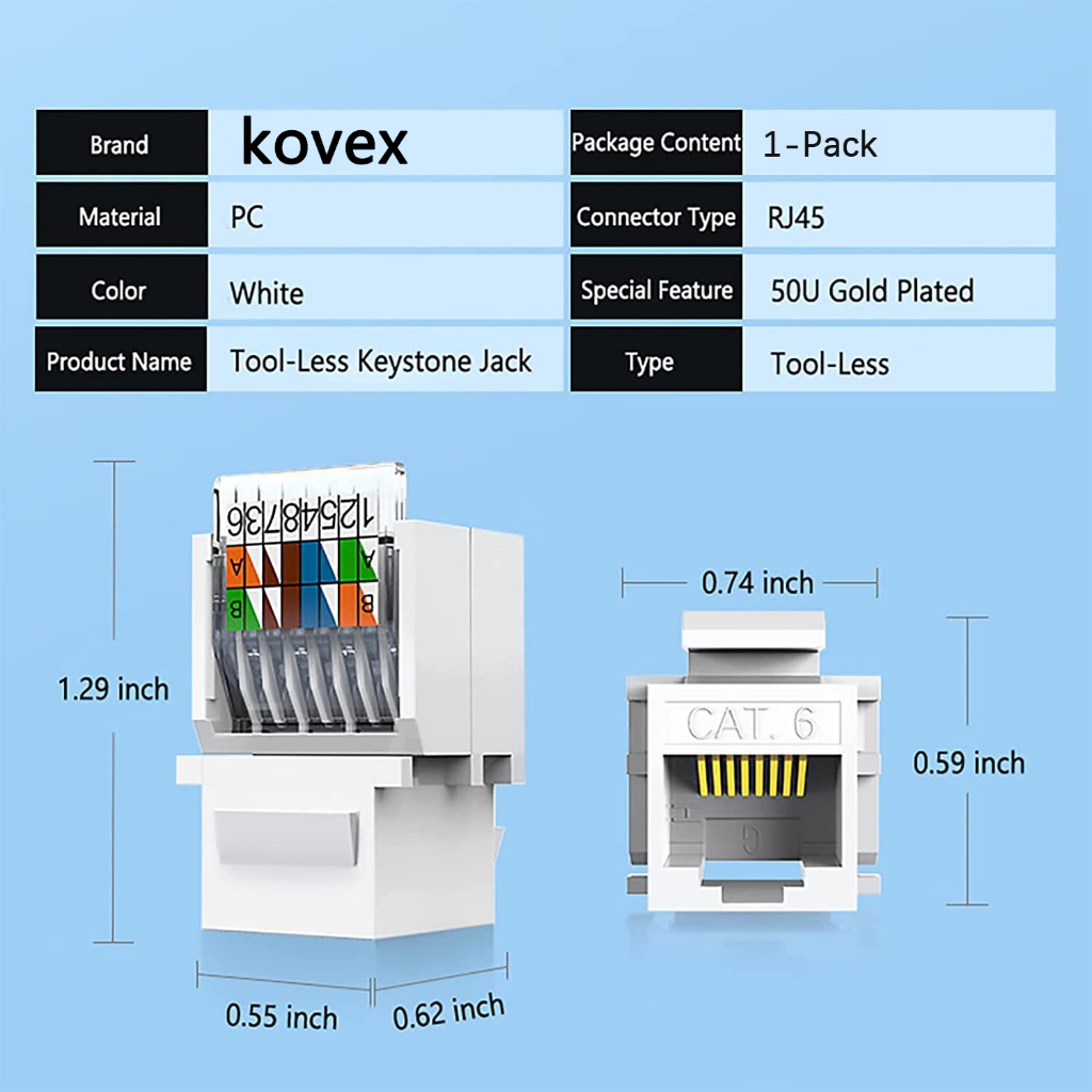 Cat6 RJ45 Tool-Less No Punch Down Tool Required Keystone Ethernet Module Network Connector Adapter