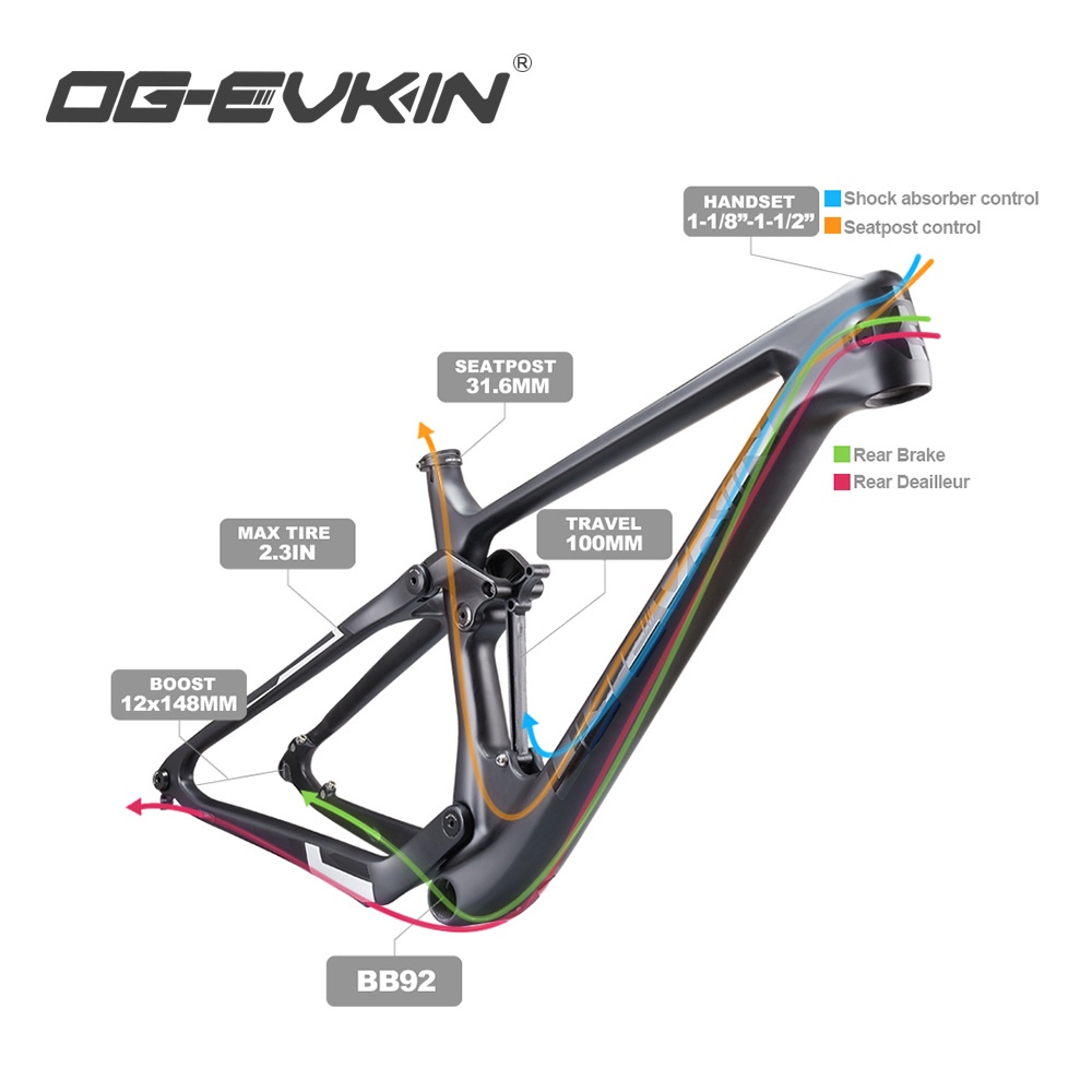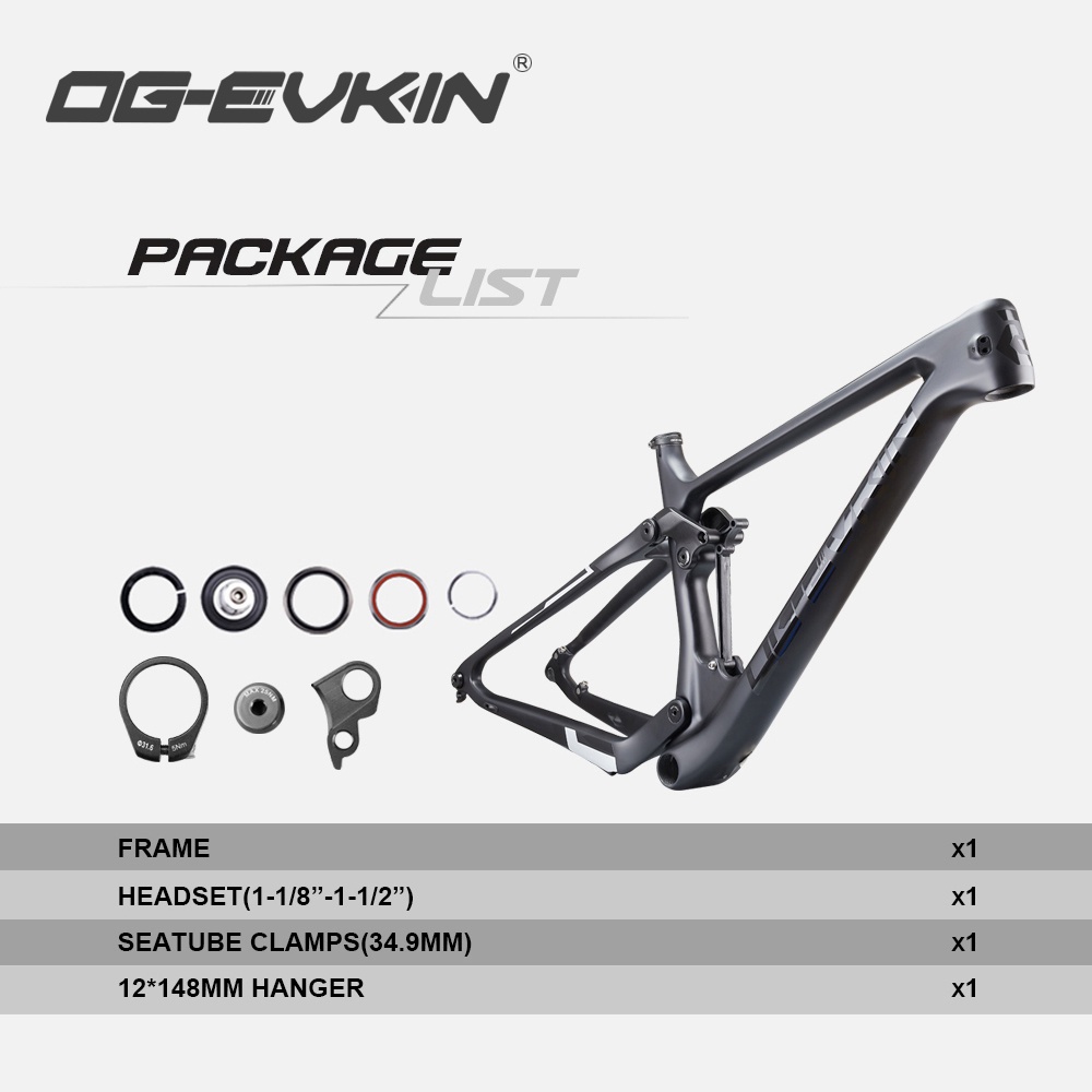 OG-EVKIN Carbon Full Suspension Mountain Bike Frame 12X148 Thru-Axle 12V Boost 29er 2.35 Tire BB92 MTB Bicycle Disc Frame CF-080