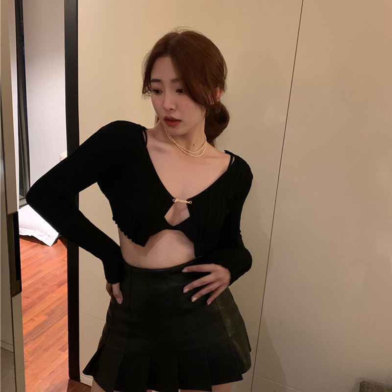 Women's sexy knitted Vneck long sleeve cropped Plus Size cardigan sweater fitted tops