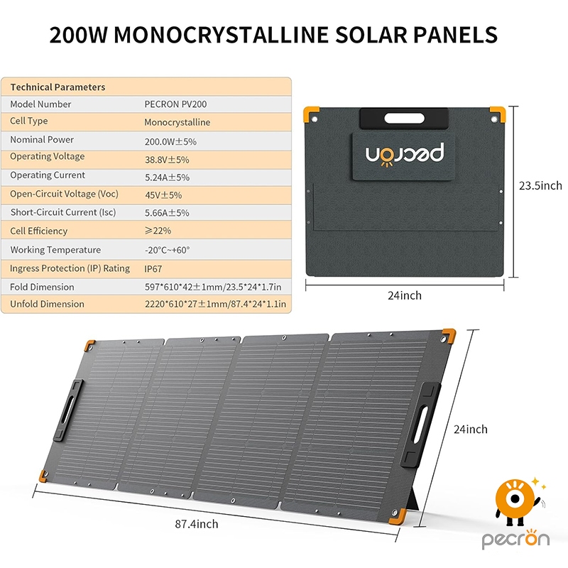 Pecron PV200W Portable Foldable Solar Panel 48.9V 5.66A Waterproof MC4 PV for Outdoor Camping Hiking