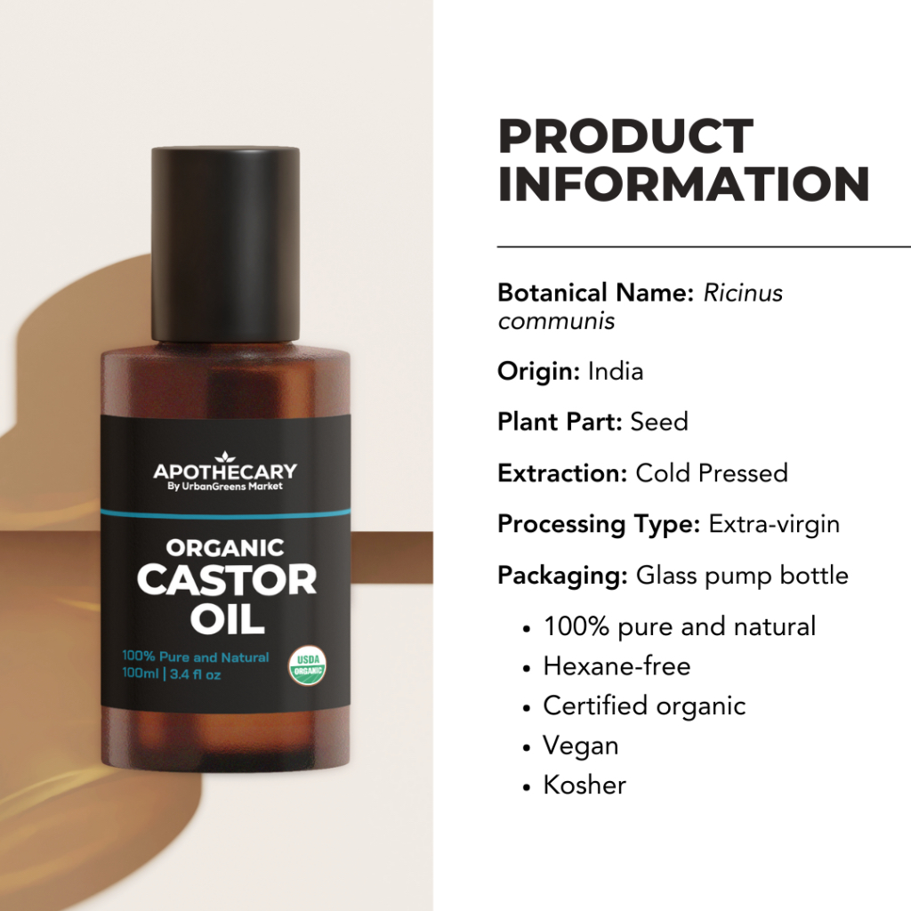 Organic Castor Oil, Hexane Free, 100% Pure and Natural Carrier Oil, Premium Quality