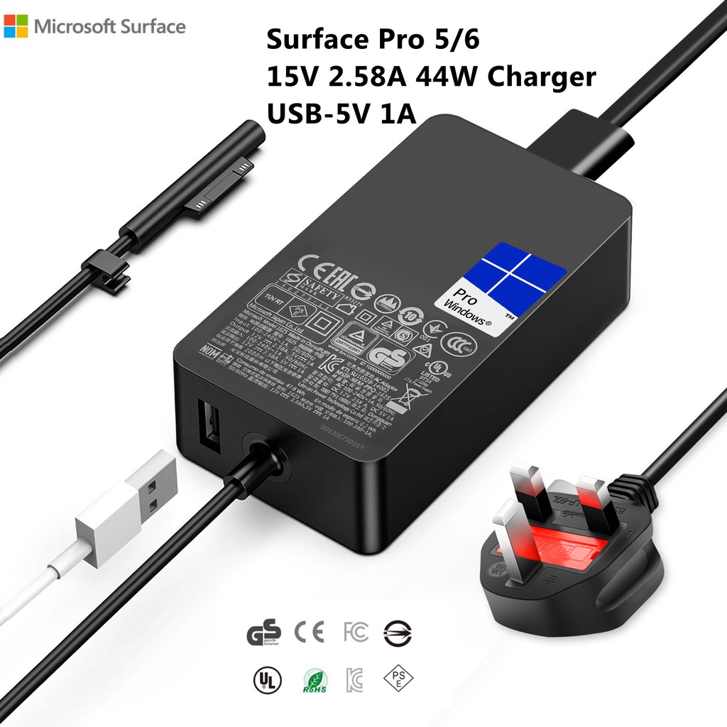 Microsoft Surface Power Charger for Surface 3 Surface Pro1 Pro2 Pro3 Pro4 Pro5 Pro6 Pro7 Pro8 Prox Book1/2/3 Go 1/2/3 Laptop 1/2/3/4 Plug UK US 48W 13W 24W 36W