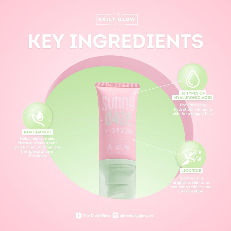 The Daily Glow Sunny Daze Sunscreen SPF 50 with Hyaluronic Acid Licorice Niacinamide for Dry Skin