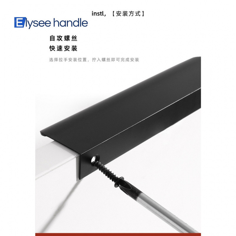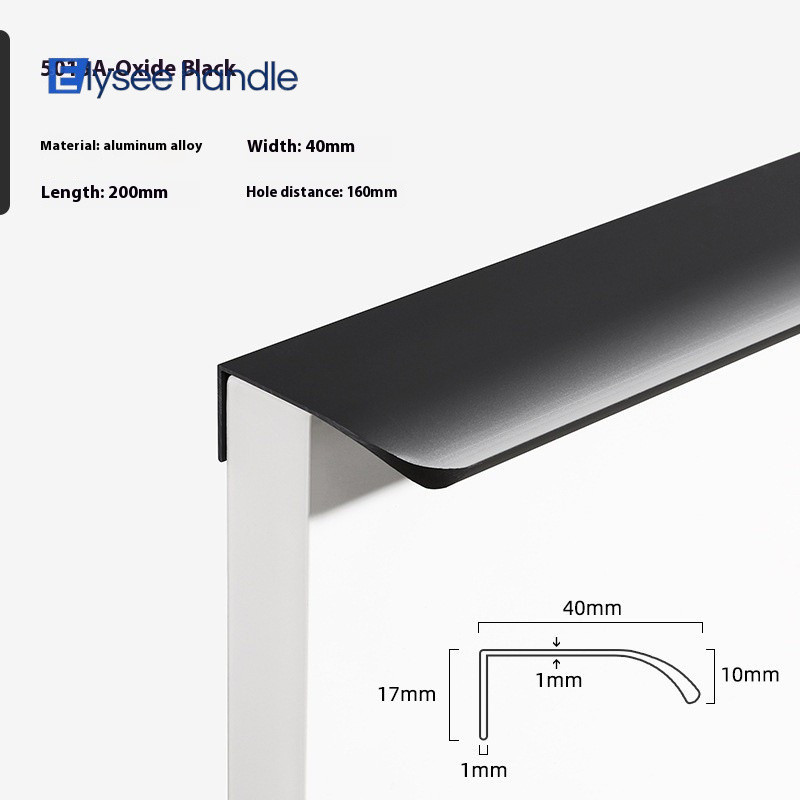 Aluminum alloy Handle Hidden Long Handle Black/Gold Invisible Cabinet Handle Wardrobe Door Handle Arc Anti-Collision Edge Sealing