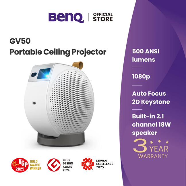 BenQ GV50 1080p Smart Ceiling Projector with Google TV, Netflix, YouTube & Enhanced Bass