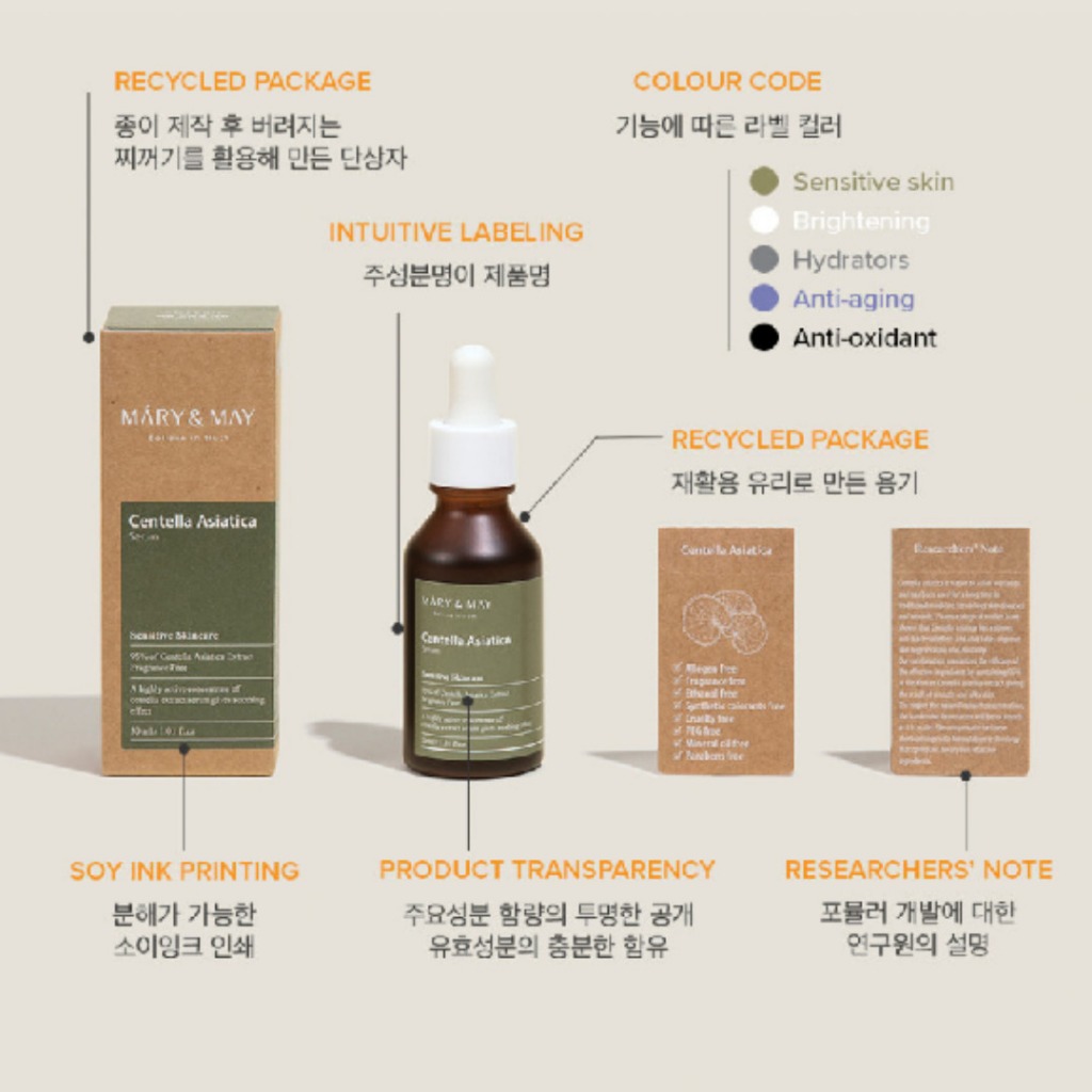 MARY & MAY Centella Asiatica Serum 30ml Skin soothing recovery protection Moisturizing balance Elastic collagen production Sensitive care Daily skincare