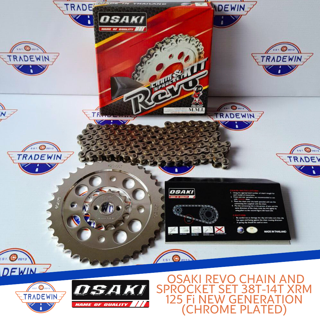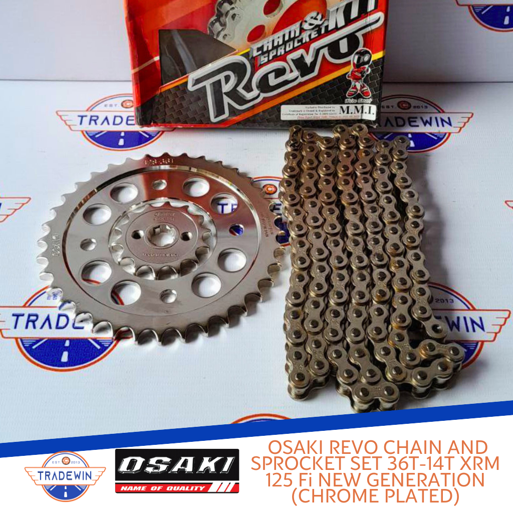 XRM 125 Fi NEW GENERATION (CHROME PLATED) OSAKI REVO CHAIN AND SPROCKET SET 34T-14T 36T-14T 38T-14T