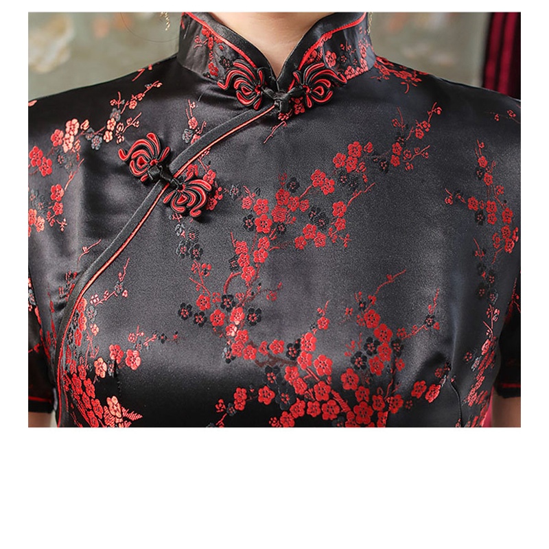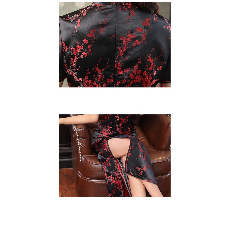 Female Cheongsam Chinese Traditional Short Sleeve Front Split Vintage Plus Size Dress Women Satin Long Dress Plum Qipao