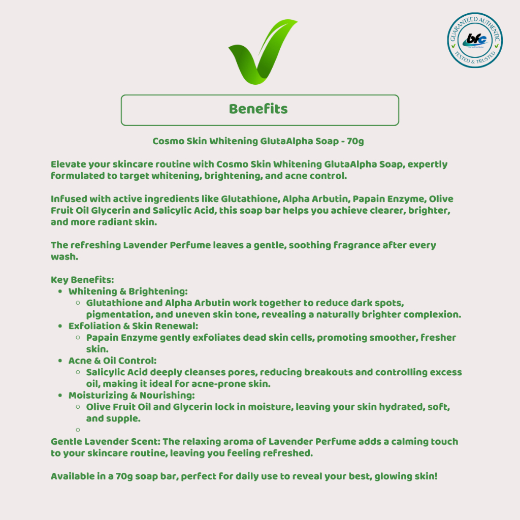 Cosmo Skin GlutaAlpha Whitening+Acne Control Face and Body Soap