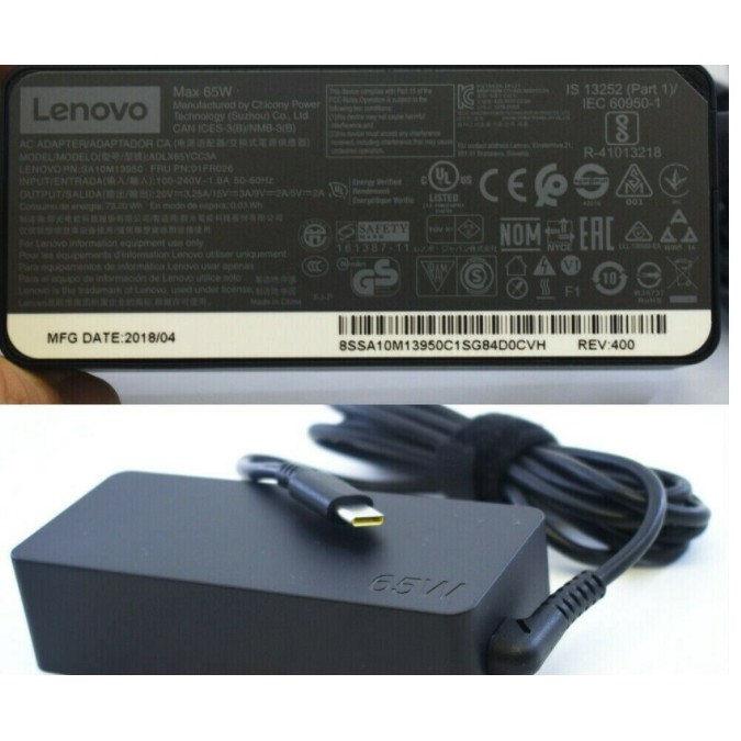 Lenovo 65W 20V 3.25A Type C Type-C Charger Adapter IBM ThinkPad T470 T480 T480s T580 E485 E580 E585