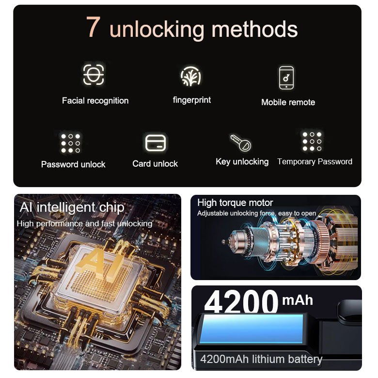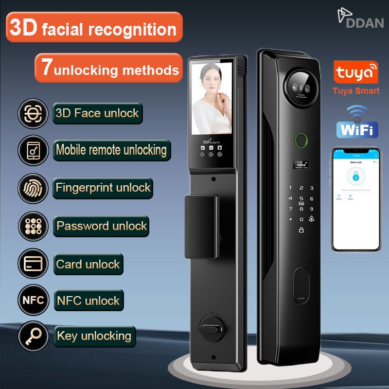 DDAN 3D facial recognition Tuya Smart door lock main door Smart Wifi door knob Electronic door lock